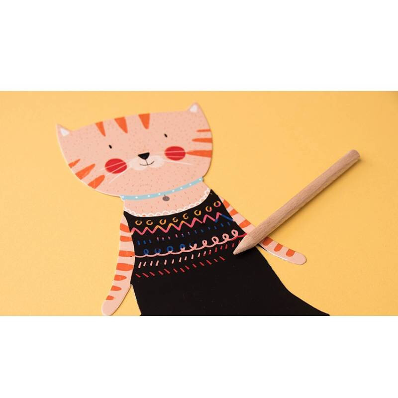 Веселое и творческое занятие для детей. Вам необходимо «рисовать» - процарапывать различные узоры на одежде персонажей карты с помощью прилагаемого деревянного стилуса. Супер красочные дизайны для создания. Результаты этой игры удивят :) Игра тренирует зрительно-моторную координацию и обучает творчеству. В набор входят 10 карточек (высота 24 см) и деревянный «карандаш».