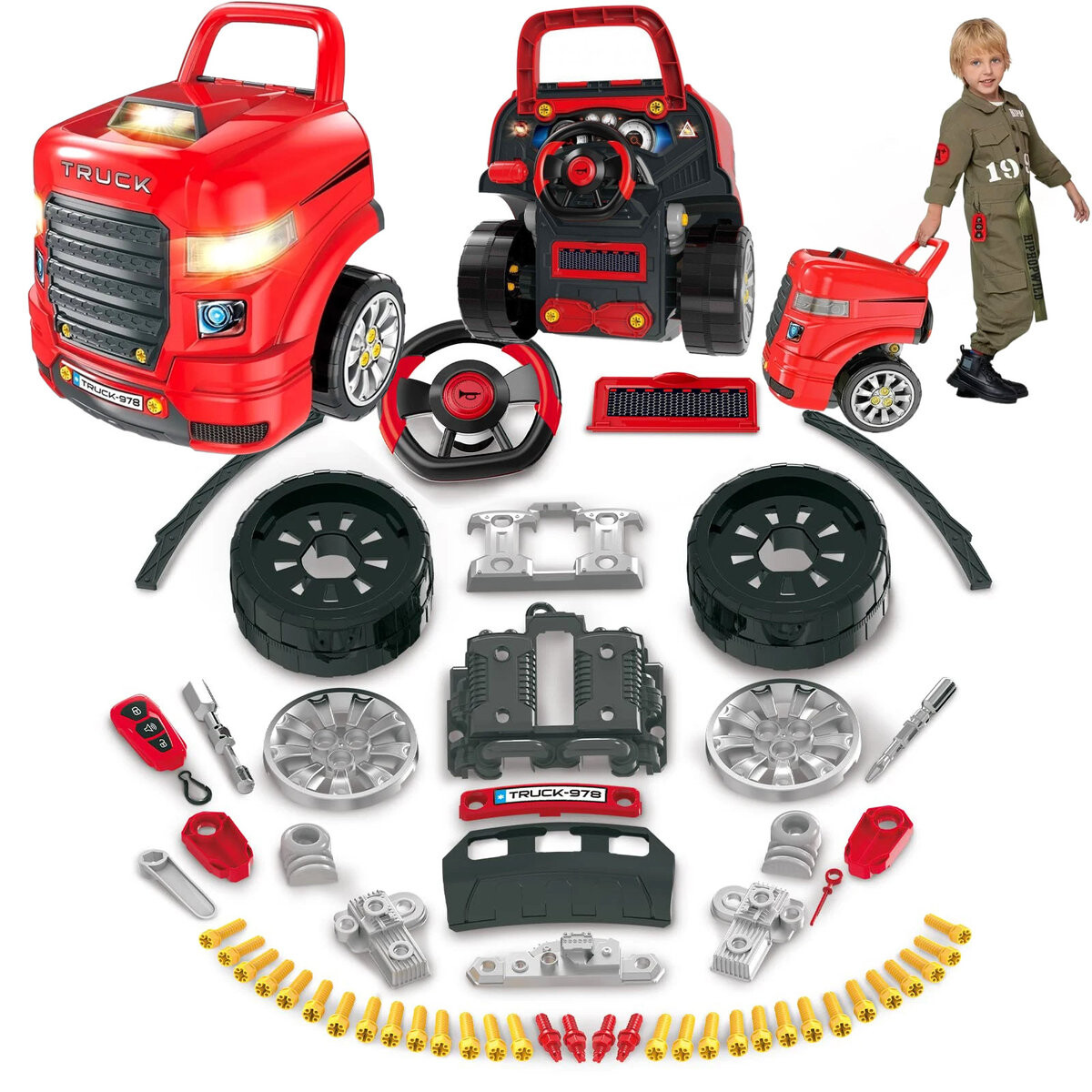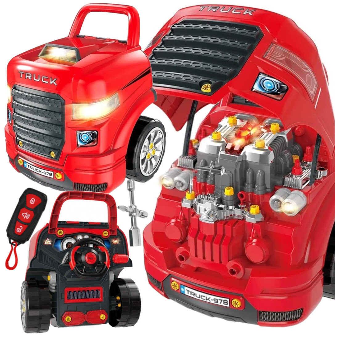 ➡В комплект входит игрушечная отвертка и два гаечных ключа, благодаря которым ребенок сможет открутить все винты и разобрать элементы.✔Реалистичные звуковые эффекты с ревом двигателя
