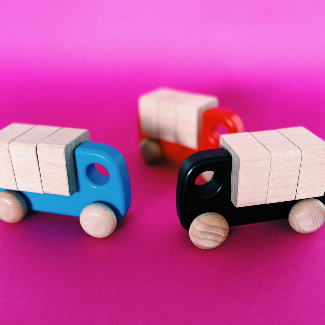 Грузовик, который больше других автомобилей. Что оно несет? Этот грузовик перевозит блоки. Их транспортировка быстрая, простая и безопасная. Просто хорошо расположите их на прицепе, и ни один из них не выпадет при повороте. Размер грузовика подстраивается под возможности рук ребенка. Однако форма, мягкие формы изгибов и правильно подобранные размеры элементов позволяют обнаружить хват пальцев и распознать формы. Каждое движение игрушки – толкание, перекатывание, катание по изгибам мебели – это также открытие пространства и динамизма, скрытого в теле. Игра с грузовиком развивает крупную моторику.