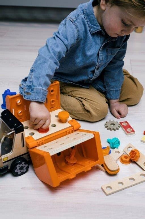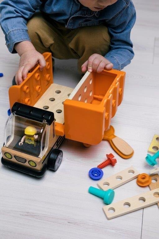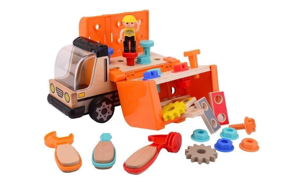 Грузовик с инструментальной мастерской идеально подходит для улучшения моторики, зрительно-моторной координации, а также способствует творческой игре и ловкости рук. .