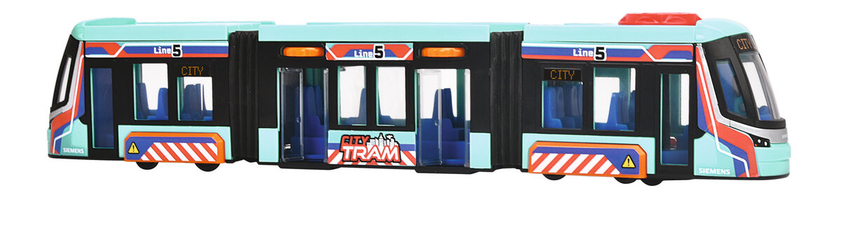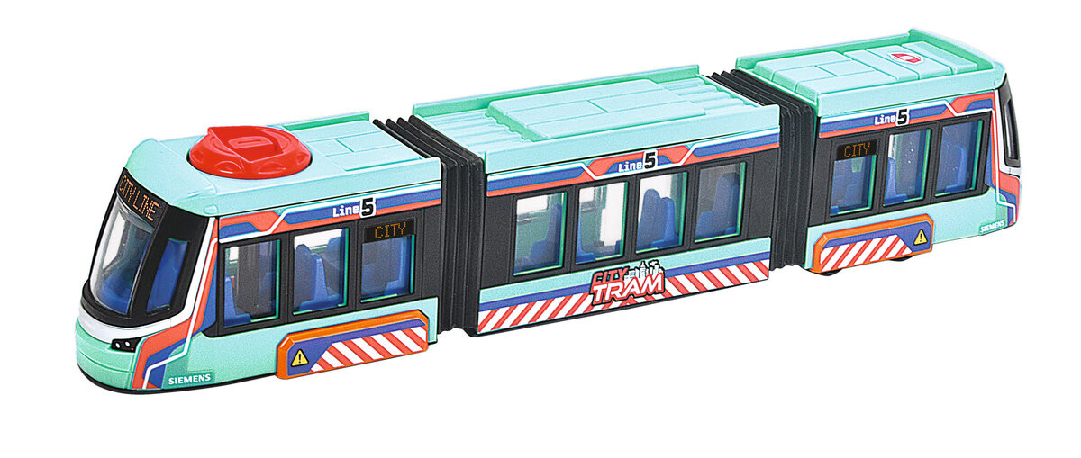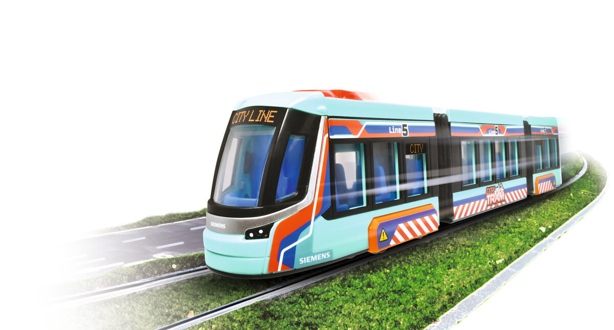 В предложении есть красиво оформленные транспортные средства для маленьких детей, динамичные игрушки со световыми и звуковыми эффектами и сложные технологически продвинутые RC-автомобили. Благодаря такому широкому ассортименту товаров компания Dickie Toys найдет что-то для детей всех возрастов.Сочлененный городской трамвай Siemens имеет открывающиеся двери. Кроме того, он был дополнен функцией рулевого управления с использованием выпуклого, вращающегося вправо и влево логотипа Dickie Toys, который расположен в самой верхней части автомобиля. Большие стеклянные окна придают красивый вид тщательно продуманному интерьеру. Длина: 40 см 3l+ Обучающие игрушечные транспортные средства