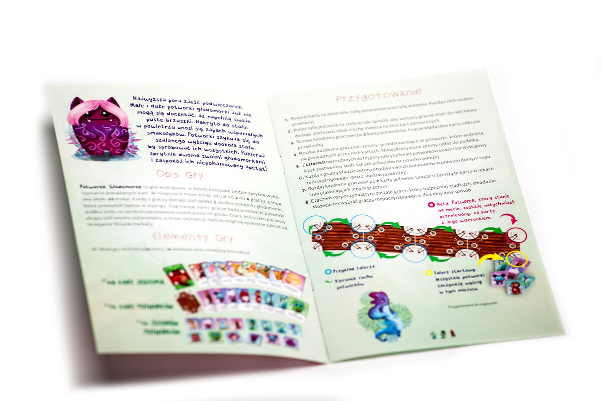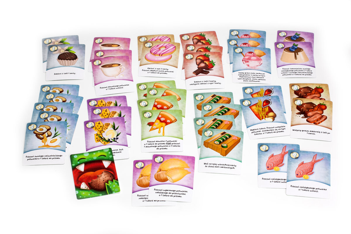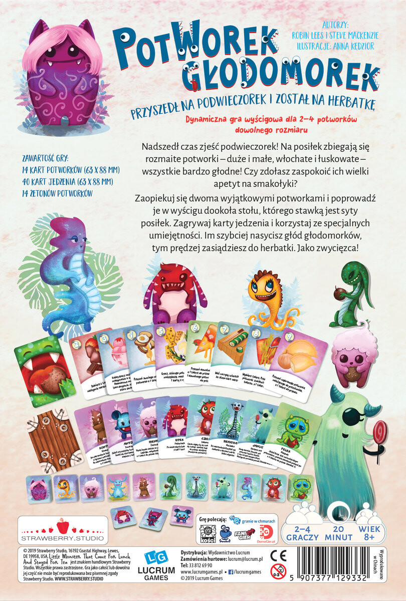 Hungry Monster — это гоночная игра, в которой главное — разумно использовать карты. Каждому игроку предстоит заботиться о двух милых (и очень голодных) монстрах, которых он будет вести в гонке вокруг стола. Игрок, который первым обойдет стол со своими монстрами (удовлетворяя их аппетит), становится победителем и сможет спокойно начать пить чашку чая.