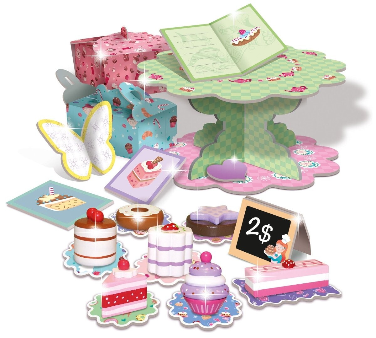 Богатый набор, включающий в себя все необходимое для фурнитуры, упаковки вашего вкусного печенья в бумагу и коробки, а также множество различных картонных и бумажных аксессуаров.