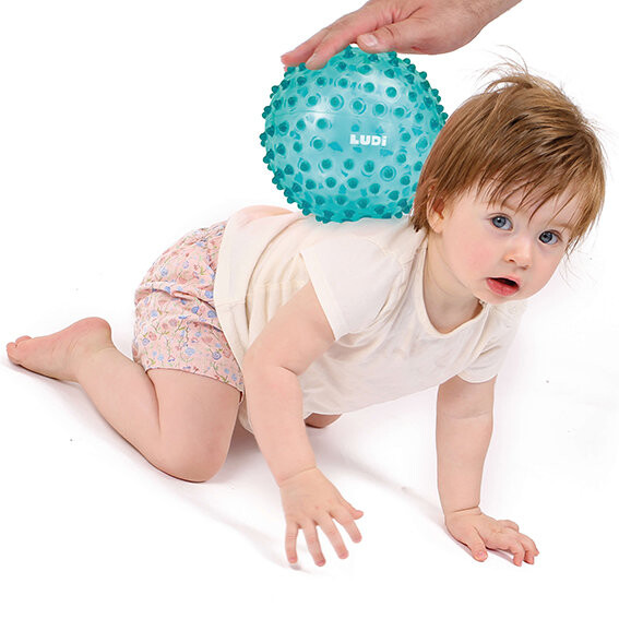 Сенсорная стимуляция: Выступы и различные текстуры мяча стимулируют осязание, развивая сенсорное восприятие и любознательность ребенка.