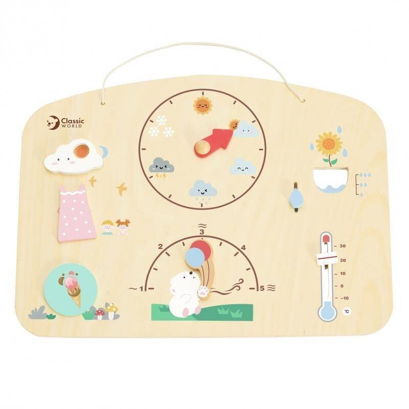 Образовательный барометрот известного бренда Classic World — идеальный продукт для изучения погоды. Развивающая игрушка изготовлена из высококачественного дерева, окрашена нетоксичными, безопасными для детей красками. Барометр показывает текущую погоду, количество осадков, силу ветра и температуру на улице. Ребенок может брать барометр в поездку и постоянно устанавливать погодные условия за окном.