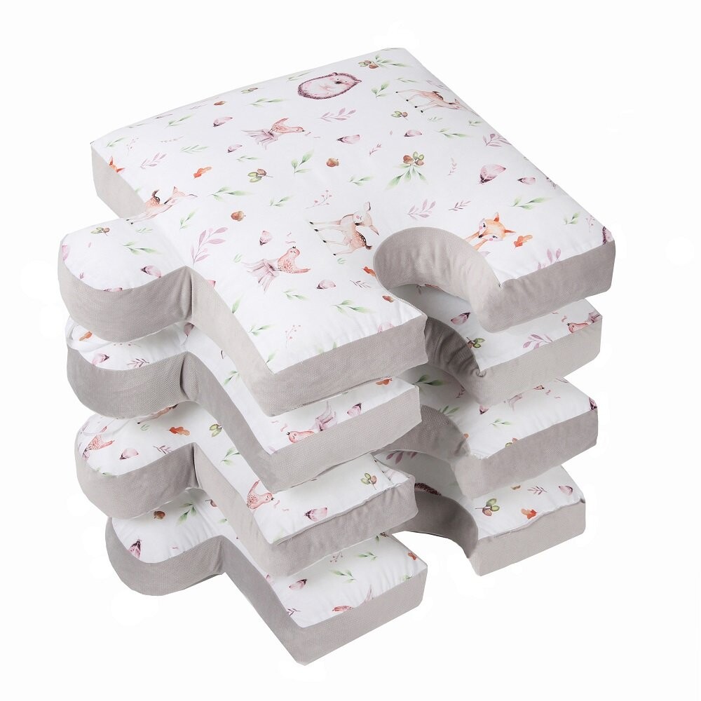 Игровой коврик Puzzle изготовлен из материалов высочайшего качества. Внешний и нижний слои изделия состоят из 100% хлопка. а его бока отделаны мягкой и приятной на ощупь тканью Бархат. Внутри наполнен антиаллергенным полиэстеровым нетканым материалом, который не меняет своих свойств после многократных стирок. К каждому элементу коврика вшиты хлопковые ленты, которые при завязывании образуют красивые декоративные бантики. Благодаря им пазл не двигается во время использования, что обеспечит безопасность ребенка.