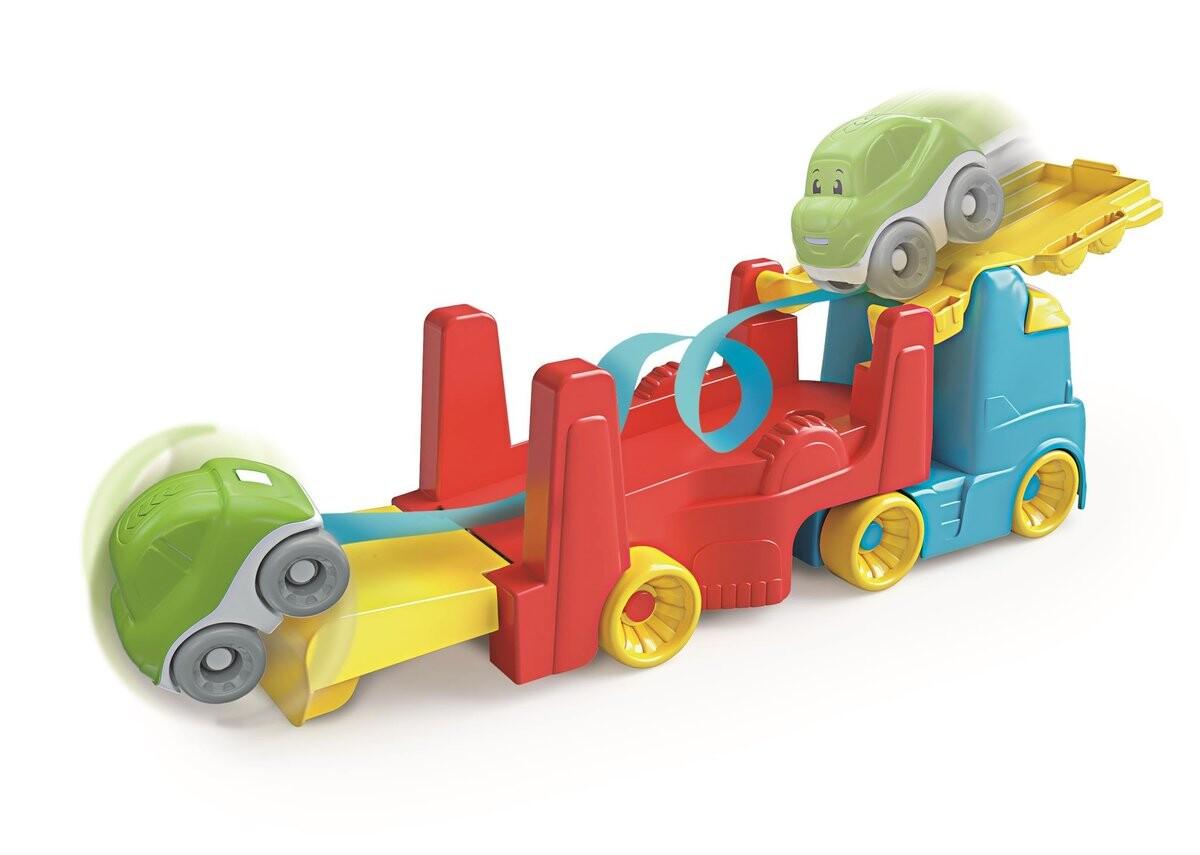 Красочный грузовик Малыша Клементони превращается в полуприцеп для перевозки игрушечных машинок! Прицеп становится трассой, по которой игрушечная машинка может мчаться и катиться, при этом она падает и совершает забавные кувырки, вызывающие любопытство ребенка. Игрушка стимулирует ловкость рук и воображение ребенка. Игрушка с возможностью расширения. Откройте для себя все цвета сумасшедших машин! Play For Future: продукт, изготовленный на 100% из переработанных материалов.