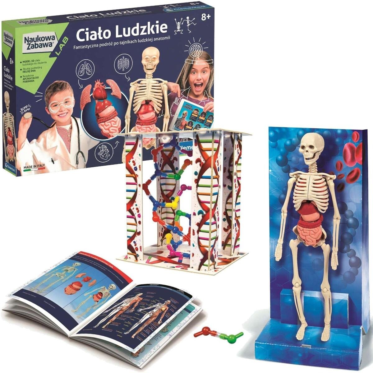 Фантастическое развлечение, которое познакомит вас с анатомией человека простым и понятным способом благодаря реалистичной модели человеческого тела, которую нужно собрать. скелет и органы. После выполнения всех заданий веселье можно продолжить благодаря веб-приложению. доступ к которому вы можете получить через веб-сайт Клементони, вы найдете там множество 3D-визуализации и несколько иллюстративных анимаций. Упаковка: 7 x 45, 1 x 31, 1 см