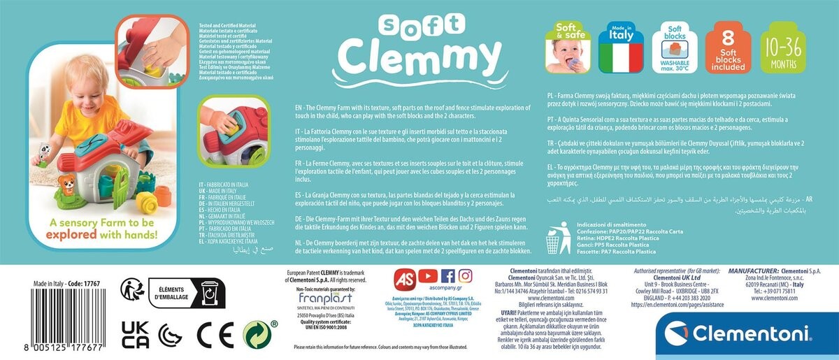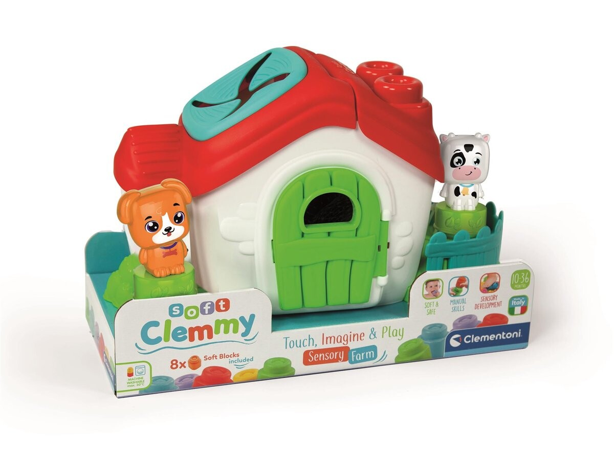 Новый набор «Ферма», который также служит ведром Клемми. Различные материалы и текстуры позволяют малышу весело собирать и собирать мягкие фигурки и кубики животных. Безопасность и гигиена: все компоненты можно мыть в посудомоечной машине. Осязание и навыки ручного труда: классический продукт из мягких элементов, текстурированный и безопасный в использовании. Вставляйте, ищите и играйте с фигурками животных и мягкими блоками.