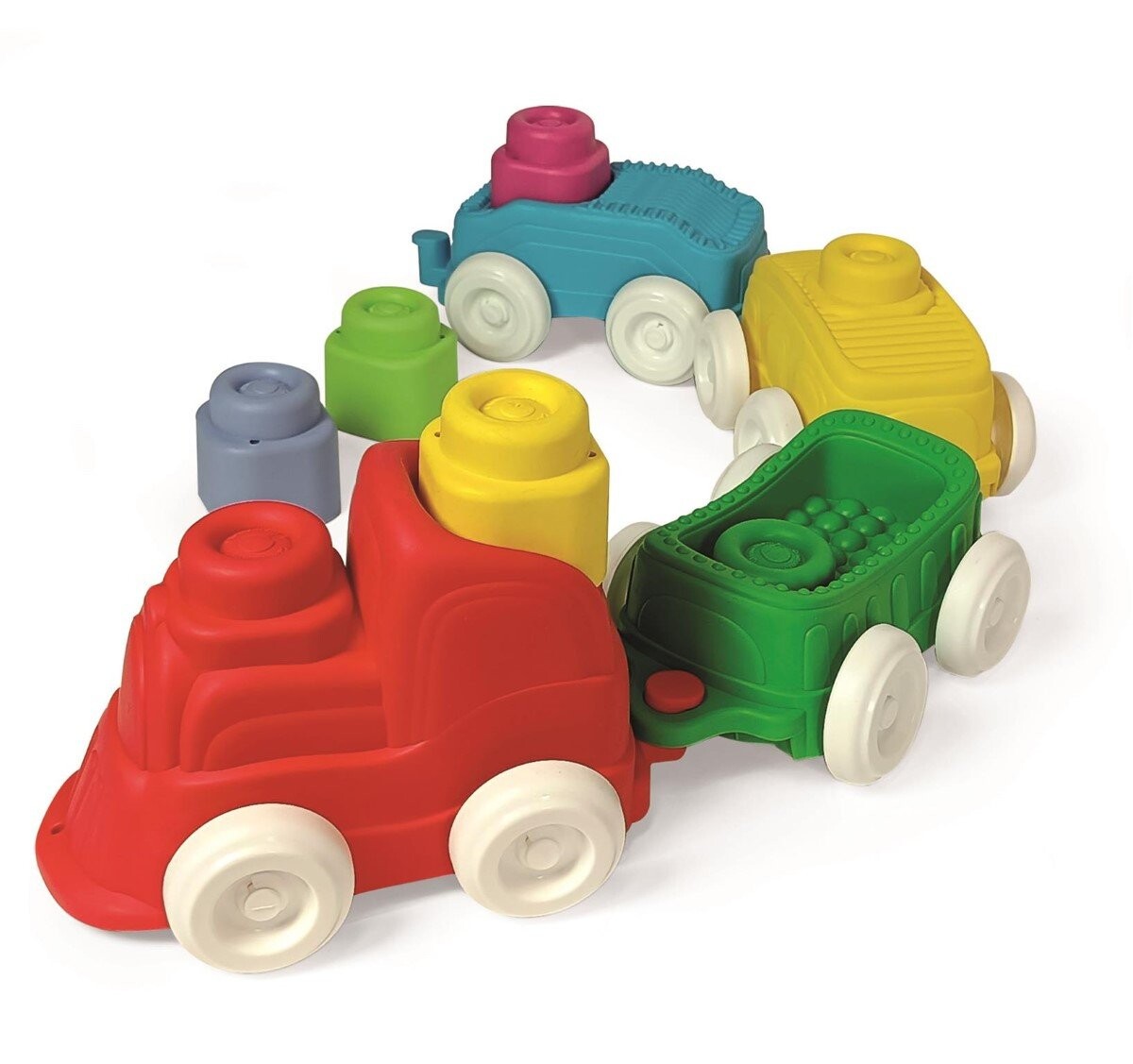 • Мягкий поезд с паровозом и вагонами, приятный на ощупь и игру.