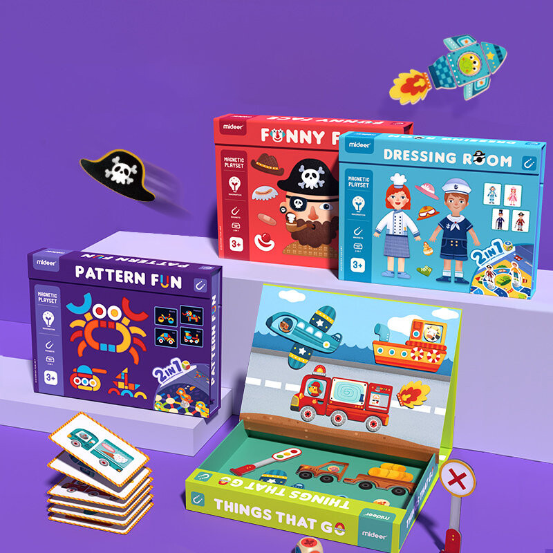 Создавайте сотни комбинаций транспортных средств с помощью этого магнитного набора. В комплекте 59 магнитов и 8 карточек поддержки.