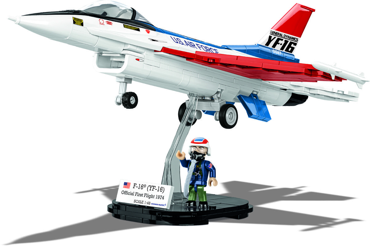 F-16 (YF-16) Первый полет 1974 года — уникальное издание культового самолета, уже 50 лет защищающего небо десятков стран мира. Его первый полет состоялся 2 февраля 1974 года. Мы решили воссоздать характерную окраску прототипа и фигурку летчика-испытателя!