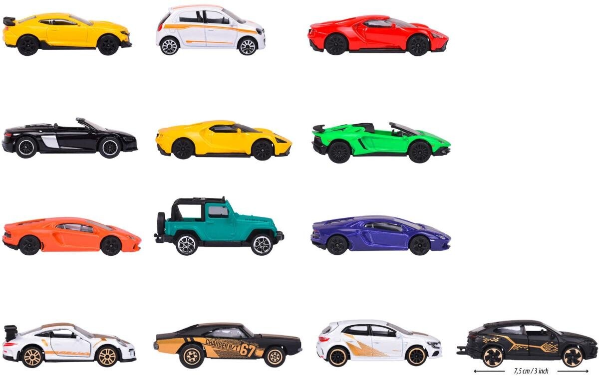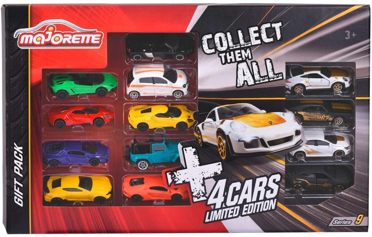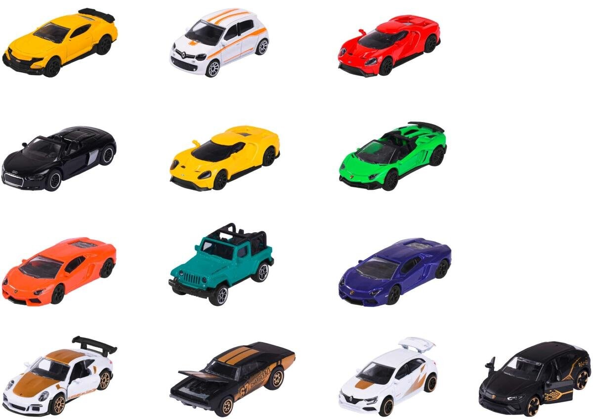 Автомобили из этой лимитированной коллекции имеют открывающиеся элементы, такие как: двери/капот/багажник. Все автомобили производятся по известным автомобильным лицензиям.Majorette Metal Vehicles — набор из 13 штук.Majorette Metal Vehicles — это коллекция из 13 уникальных моделей трамваев, которые подарят детям и коллекционерам бесконечную радость от игр и исследований. В этот набор входит целых 9 различных уличных транспортных средств, а также 4 уникальных автомобиля ограниченной серии, украшенных золотыми и черными элементами. Каждая модель тщательно изготавливалась по лицензии известных автомобильных брендов, что обеспечивает аутентичность и детализацию. а также добавляет немного престижа каждой модели. Роскошь в золотых и черных деталях