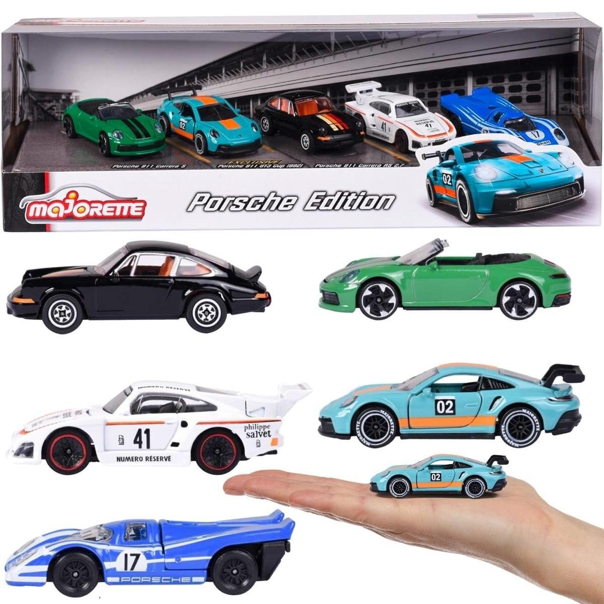 В набор входят 5 уникальных моделей автомобилей с лицензией Porsche. У каждого автомобиля есть движущиеся части.Мечта коллекционераМы с гордостью представляем набор автомобилей Porsche Majorette — уникальный набор из 5 моделей автомобилей, лицензированных этой престижной маркой. Этот набор – мечта каждого автолюбителя и коллекционера. Каждый автомобиль в наборе тщательно проработан и точно отражает детали реальных моделей Porsche. Эти металлические модели, оснащенные движущимися частями, готовы к динамичной игре. Культовые модели Porsche