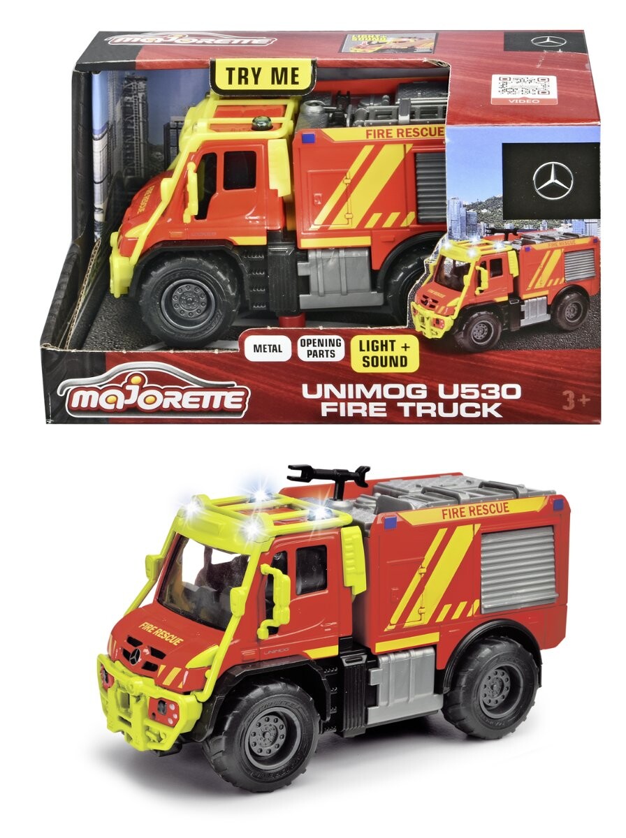 На помощь! Многие дети мечтают пойти служить в пожарную команду. Этот игрушечный автомобиль, подходящий для использования внутри и снаружи помещений, позволяет детям погрузиться в мир пожарных и узнать о функциях пожарной машины. Пожарная машина Grand от Majorette имеет поворотные колеса, что позволяет маленьким детям легко маневрировать. Помимо детально проработанных деталей премиальной модели MERCEDES UNIMOG, автомобиль также оснащен 2-мя мигающими фарами, которые можно включить, нажав на крышу автомобиля. Таким же образом активируются реалистичные звуки: звук мчащегося автомобиля и звук мчащегося автомобиля на сиренах, предупреждающих о начале движения автомобиля, и все это подарить детям как можно больше мгновений, полных улыбок и незабываемого веселья!