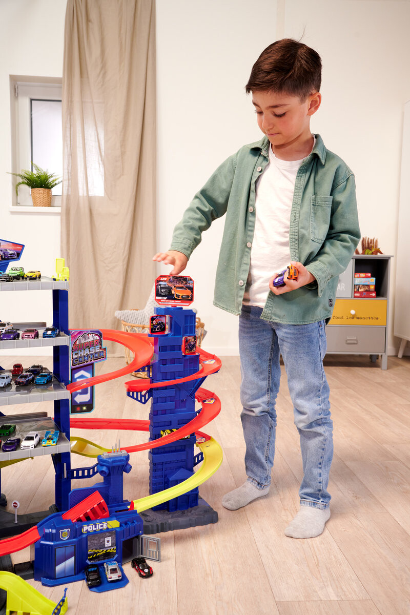 Веселье начинаетсяВеселье начинается! Ловите преступников, выступайте в роли полицейских и играйте в полицейскую погоню. Путешествие будет опасным и увлекательным благодаря лабиринту горок для машин. Большой гараж, оборудованный пандусами и разделенный на шесть зон, позволит вам надолго развлечься с друзьями, а пять уровней, соединенных горками и лифтом для машин, станут вашей сценой для ролевых погонь.