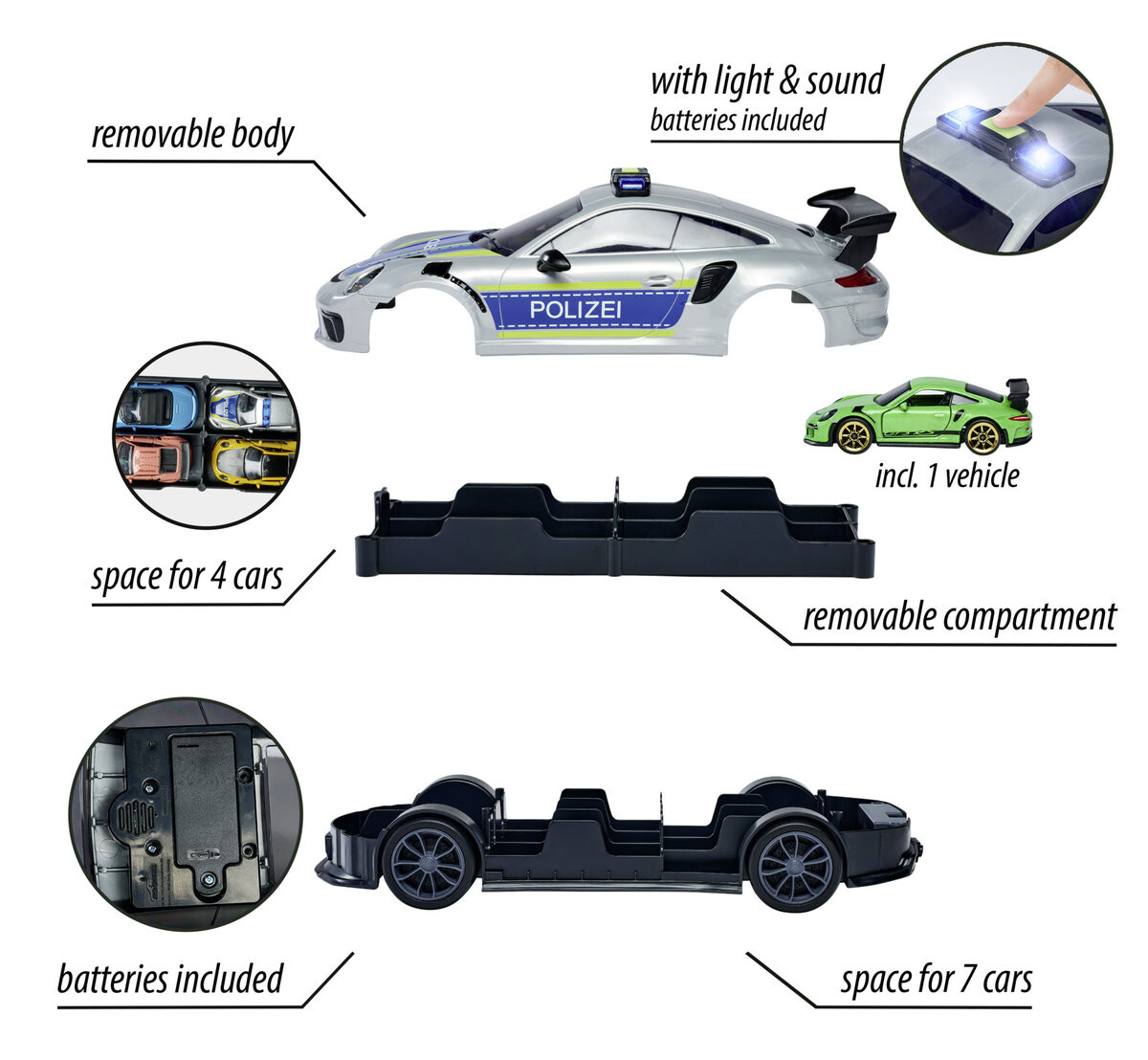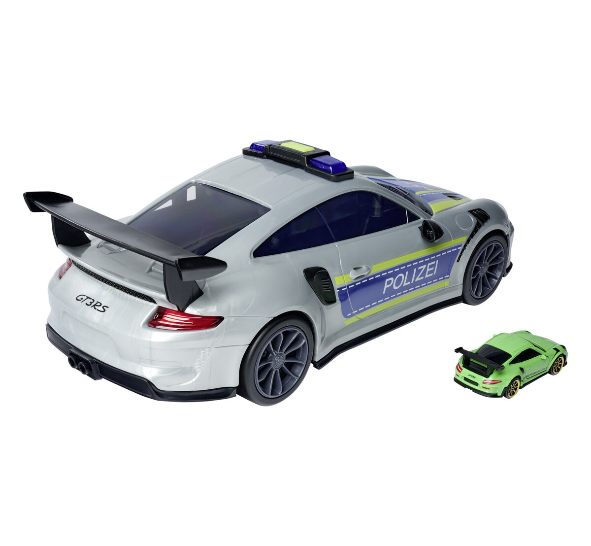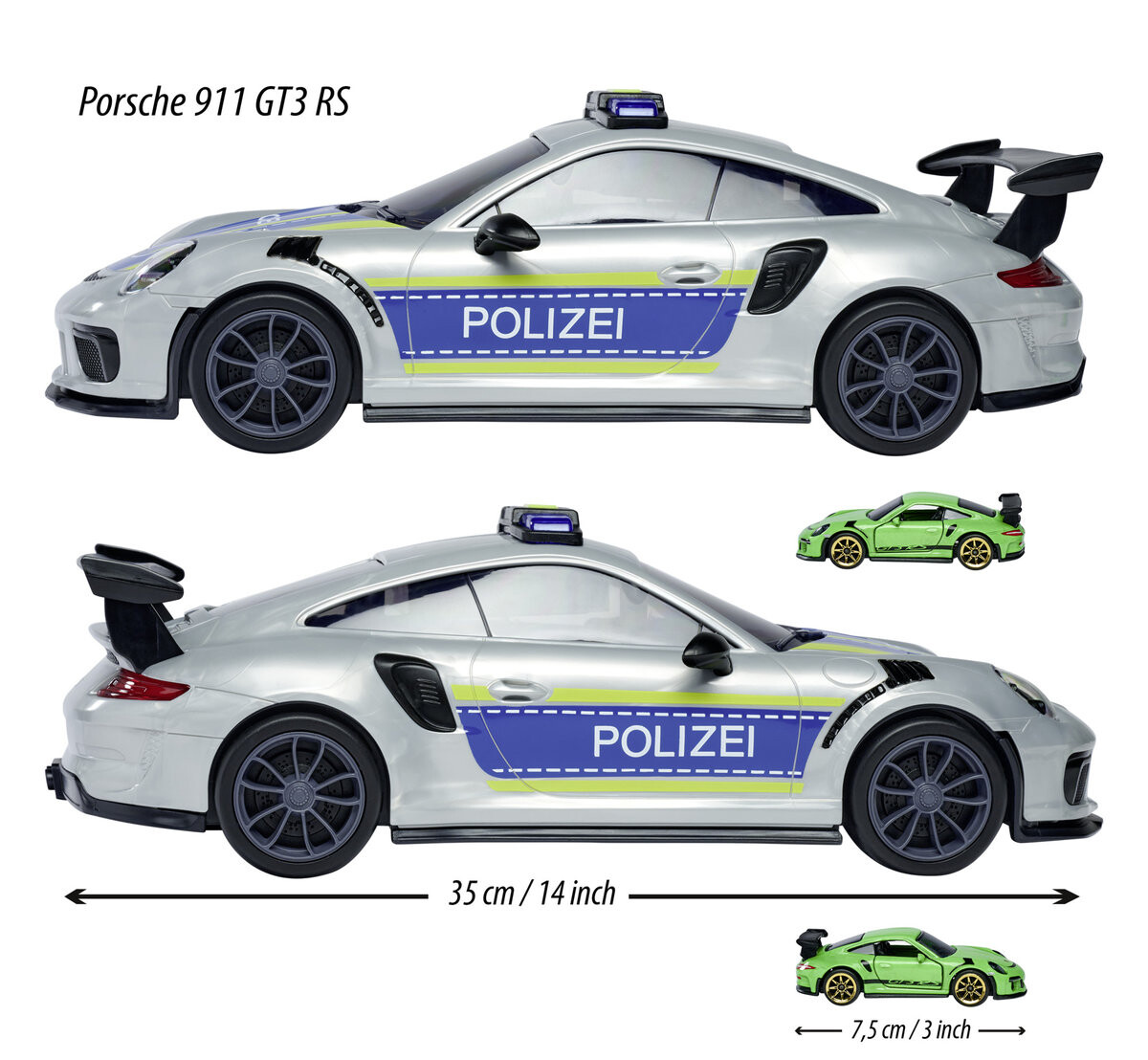 В комплект также входит 1 Porsche 911 GT3 RS в масштабе 1:64 зеленого цвета.