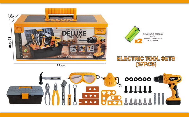 • Хорошо оснащенный набор инструментов с интерактивной дрелью и отверткой, а также ящиком для инструментов для детей старше 3 лет. Набор изготовлен из пластика самого высокого качества и насчитывает целых 37 элементов. Помимо большого профессионально выглядящего ящика для инструментов, в набор также входят: интерактивная дрель/отвертка со сменными насадками, защитные очки, маска, отвертка, молоток, французский гаечный ключ, пассатижи, пассатижи и множество винтов. колпачки и отвертки. Дрель/шуруповерт питается от 2 батареек типа АА 1,5 В (не входят в комплект). Он завинчивается и отвинчивается, имеет сменные насадки и съемный аккумулятор. Особенности набора: – предназначен для детей от 3 лет, – изготовлен из материалов самого высокого качества, – богато укомплектованный набор, включающий целых 37 элементов, – большой размер. профессиональный ящик для инструментов с ручкой для переноски, – аккумуляторная дрель, – съемный аккумулятор в дрели и сменные насадки, – дрель завинчивается и отвинчивается и издает характерные для этого вида деятельности звуки. Размеры - ящик для инструментов ок. 32 см х 18, 5 см х 13 см, - дрель/отвертка ок. 16 см х 17,5 см х 5 см, — сменные насадки ок. Длина 6,5 см, - защитная маска ок. 8,5 см x 7,5 см x 3,5 см, - защитные очки ок. 15,5 см х 6,5 см х 5 см, - накидной ключ прибл. 15,3 см х 3 см х 1,3 см, - гаечный ключ прибл. 20 см х 5,3 см х 1,5 см, — отвертка прибл. 16 см х 2,5 см, — плоскогубцы прибл. 16 см х 5,5 см х 2 см, — плоскогубцы прибл. 15 см х 4 см х 1 см, - молоток ок. 14,5 см х 8,3 см х 2,3 см. - древесина для ввинчивания ок. 13,5 см, 11,3 см и 8,8 см, - ввинчивающиеся элементы ок. 10,5 см, 8,3 см, 5,8 см, - накладка диаметром ок. 2 8 см, - винт прибл. Длина 4,7 см, - расширительная заглушка ок. Длина 5,3 см, - упаковка ок. 32,5 см х 13,5 см х 18,3 см. В комплекте - ящик для инструментов, - дрель/отвертка, - 3 сменные насадки: плоская, крестовая, дрель, - защитная маска, - защитные очки, - накидной ключ, - торцевой ключ, - отвертка, - плоскогубцы, - пассатижи, - молоток , - 3 ввертных элемента, - 3 ввинчивающихся элемента, - 6 заглушек, - 6 винтов, - 6 дюбелей.