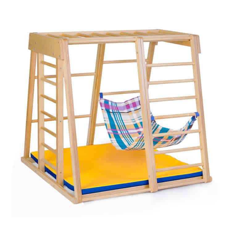 В раннем возрасте гамак используется для развития вестибулярного аппарата ребенка и координации движений, а в более старшем возрасте гамак выполняет развлекательную функцию. Предложите ребенку самостоятельно залезть в гамак, а если ему это трудно, помогите ему, немного подтолкнув сзади. Не следует слишком сильно раскачивать малыша в гамаке, чтобы не напугать его. Все гимнастические и игровые принадлежности ребенок должен освоить самостоятельно. с помощью родителей. Гамак изготовлен из мягкого и прочного текстильного материала. Крепится к противоположным перекладинам спортивного комплекта с помощью карабинов. Внимание ! Реальные цвета товара могут отличаться от цветов, представленных на фотографии.