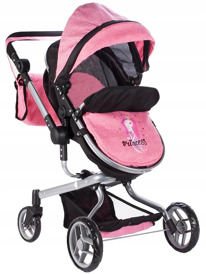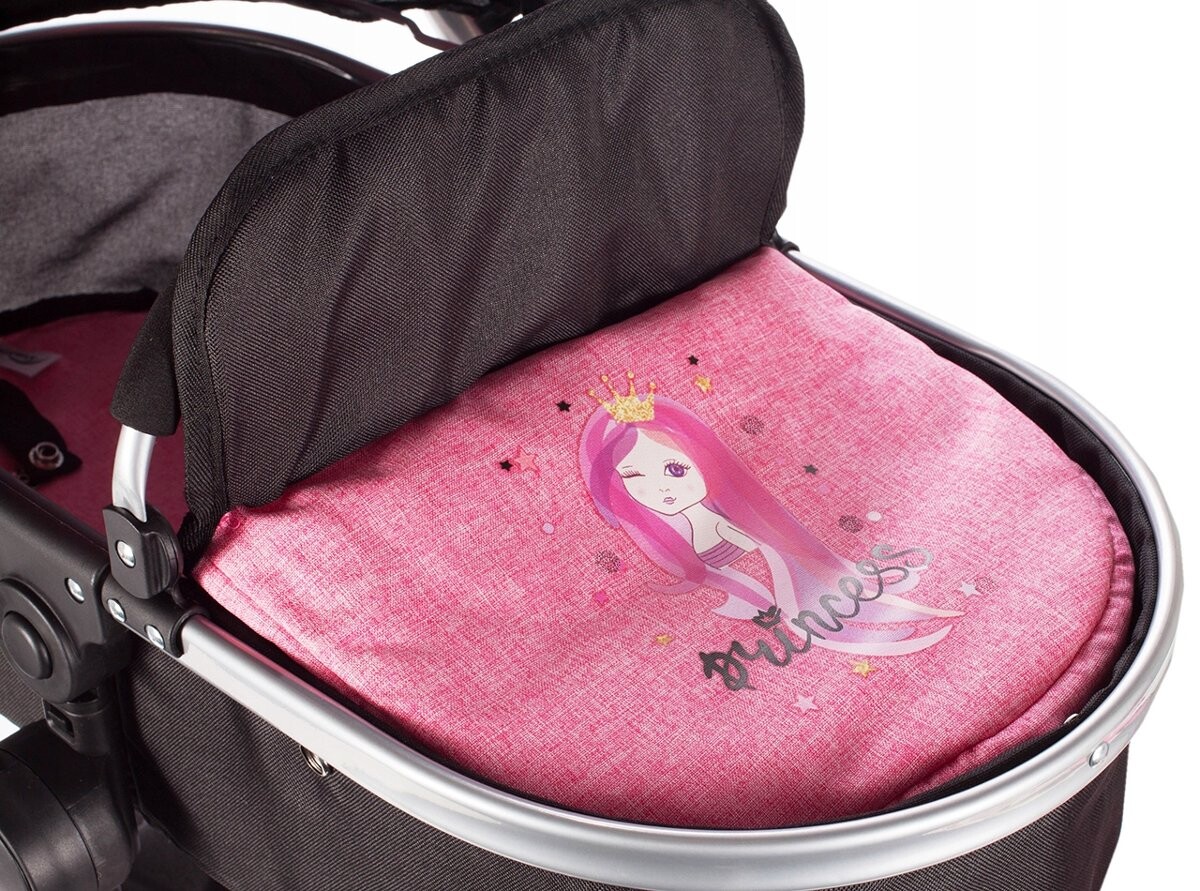 Каждая маленькая девочка любит гулять со своими куклами. Теперь он может взять их с собой на прогулку в этой очаровательной коляске. Чехол коляски, переноска и сумка изготовлены из очень прочного и тщательно сшитого материала. Коляска чрезвычайно функциональна и очень легко складывается . поэтому ее можно быстро и легко трансформировать в коляску. Версия коляски также имеет ремни безопасности - как в настоящей детской коляске!РЕГУЛИРОВКА ВЫСОТЫ РУЧКИ (64, 0-80, 0 см)!