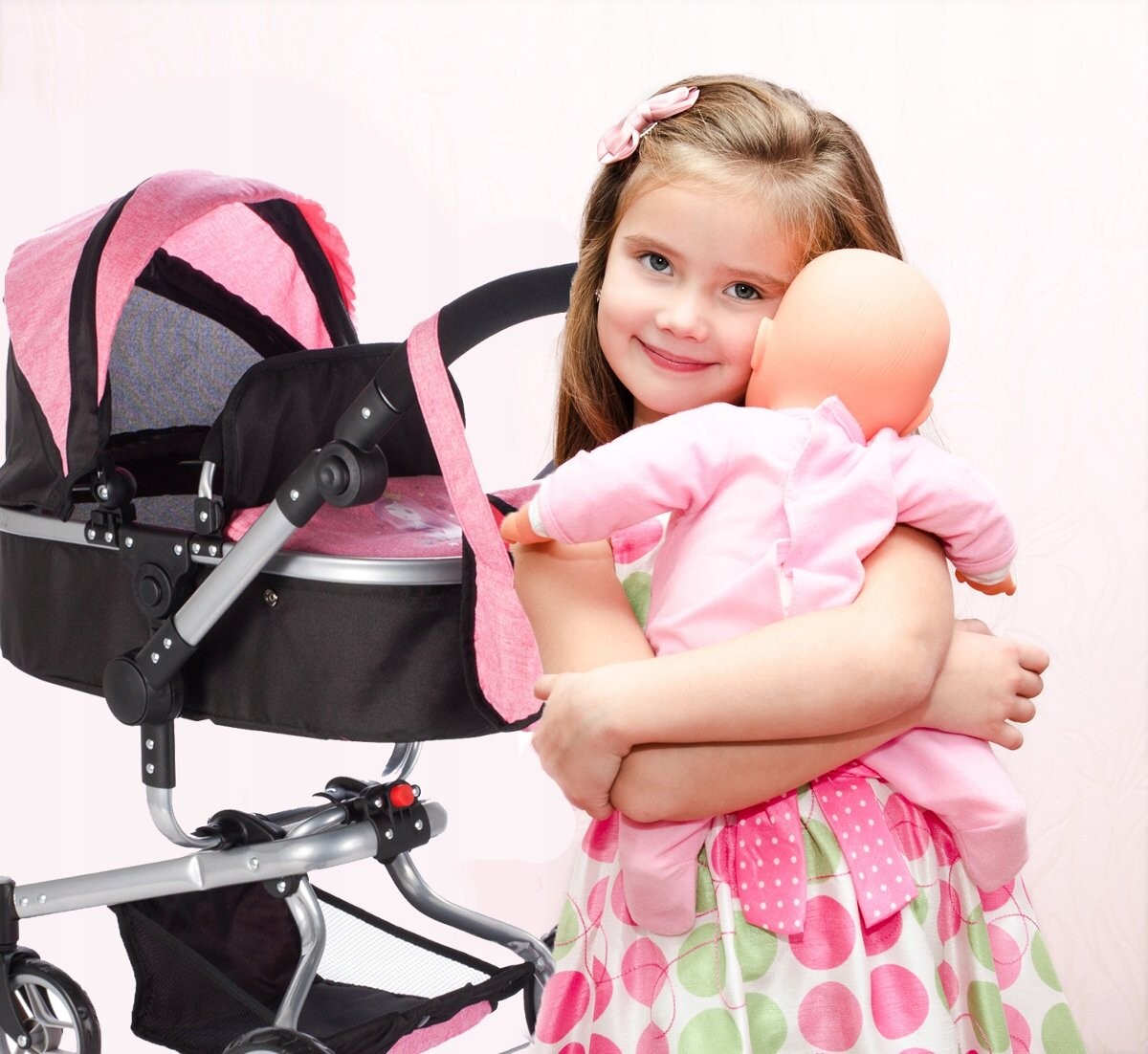 Коляска для куклы – точная копия наших детских колясок, благодаря чему наши дети будут испытывать невероятное удовлетворение от ее использования и радость от игры с ней. Игрушка имеет две функции на выбор: глубокая коляска и коляска. Ручку коляски можно расположить спереди вот так чтобы ребенок мог видеть куклу во время движения или сзади коляски под навесом.СУМКА ДЛЯ АКСЕССУАРОВ!