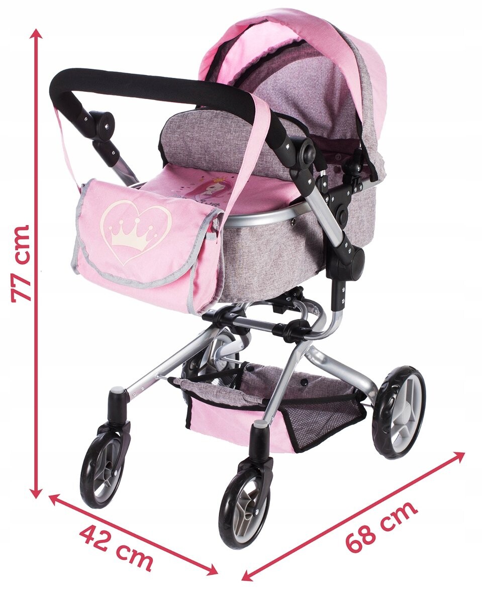 Каждая маленькая девочка любит гулять со своими куклами. Теперь он может взять их с собой на прогулку в этой очаровательной коляске. Чехол коляски, переноска и сумка изготовлены из очень прочного и тщательно сшитого материала. Коляска чрезвычайно функциональна и очень легко складывается, поэтому ее можно быстро и легко трансформировать в коляску. Версия коляски также имеет ремни безопасности – как в настоящей коляске!Параметры: