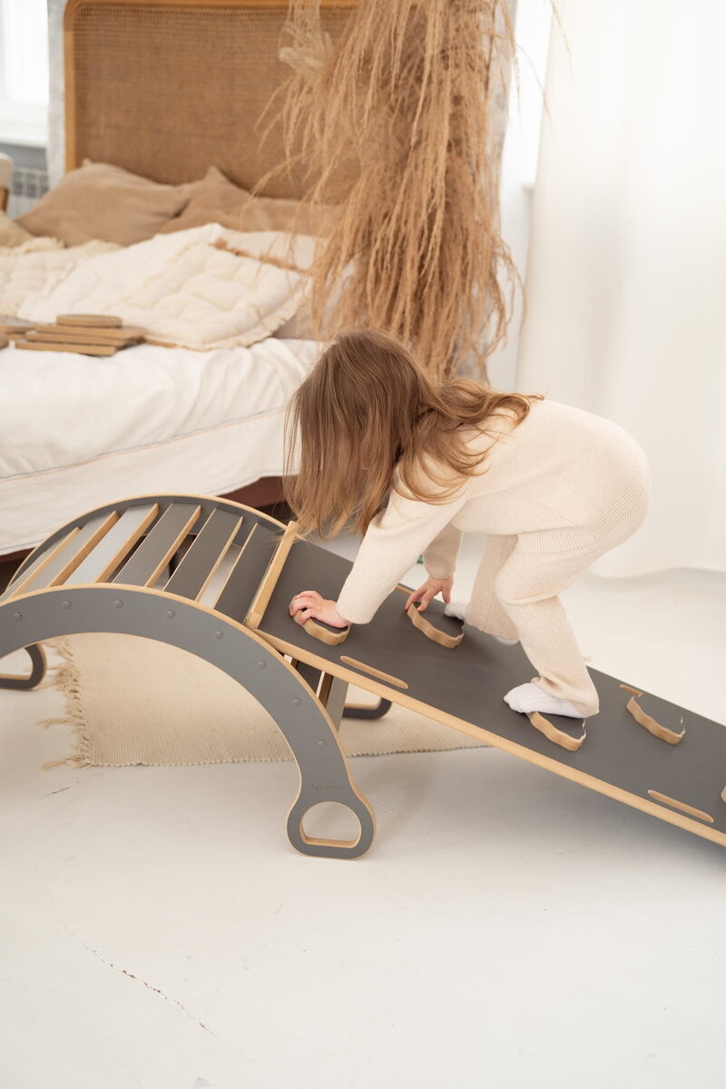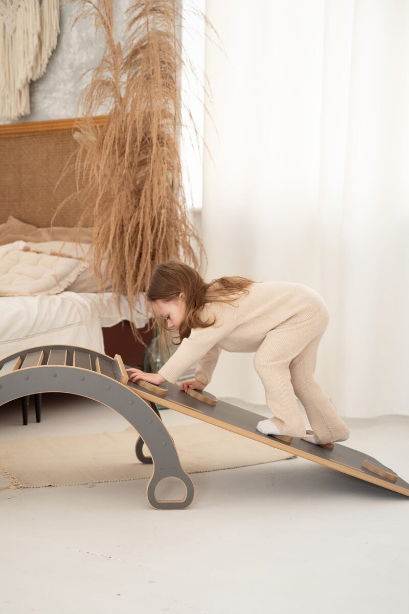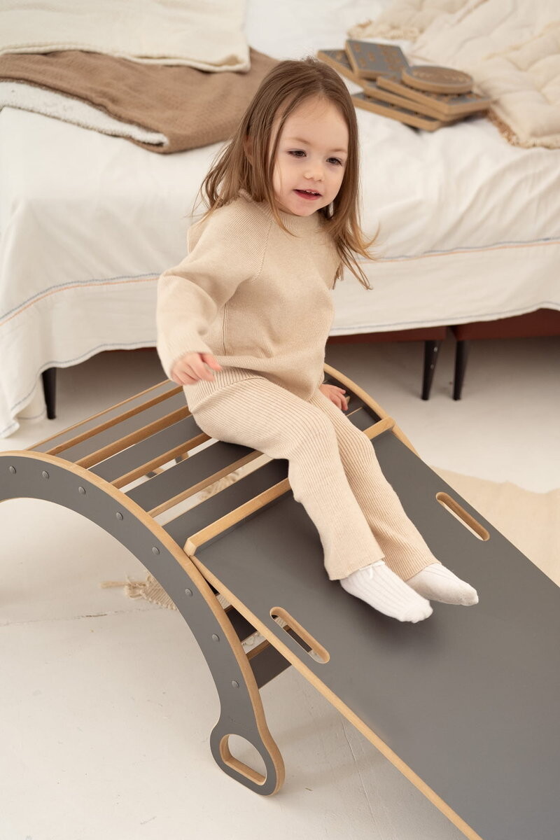 Качалка Монтессори SMALL + горка SMALL CLOUD - серый tupti.wood