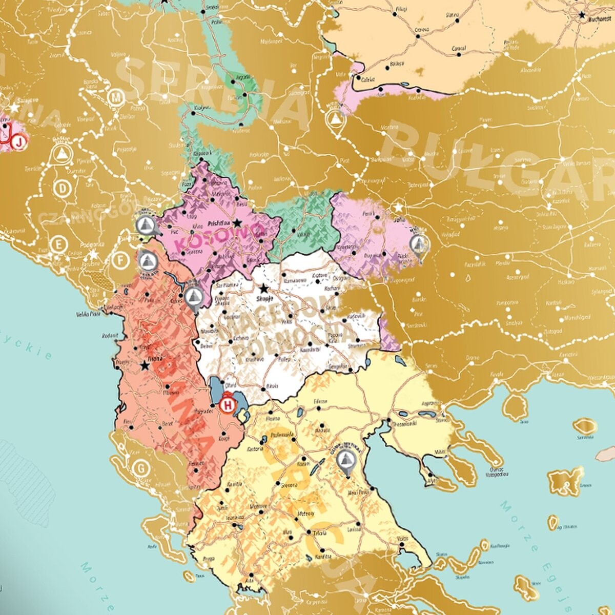 Скретч-карта №100 «Вдохновение Балканы» — это запись отпускных поездок в один из самых красивых уголков Европы — на Балканы. Благодаря этой необычной карте вы сможете сохранить свои воспоминания, одновременно наслаждаясь стиранием уже открытых уголков Балкан. Золотой скретч-слой скрывает весь Балканский регион – целых 11 стран, включая самые популярные места отдыха – Хорватию, Грецию и Болгарию.