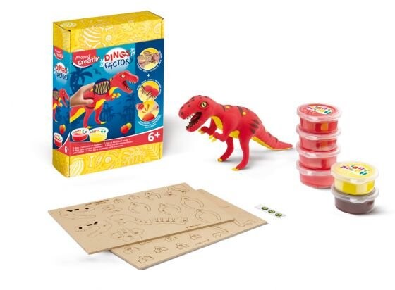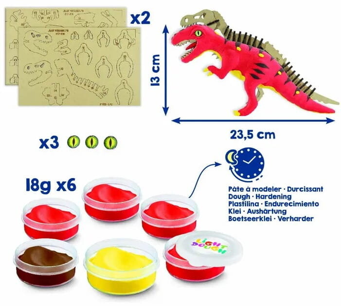 Уникальная форма пронумерованных пазлов позволяет собрать трехмерный деревянный скелет динозавра, а затем смоделировать его силуэт с помощью пластилина. Пазлы упакованы в красивую красочную картонную коробку. Благодаря насыщенным цветам пластилина тираннозавр рекс - один из крупнейших наземных хищников в истории Земли - будет выглядеть настоящим.