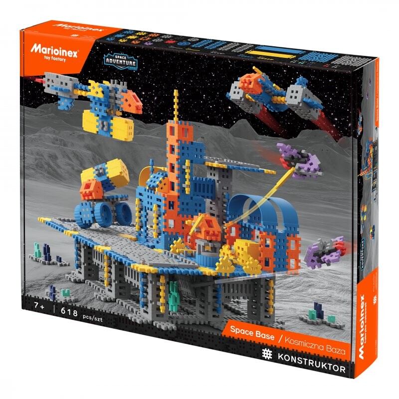 Набор состоит из 618 элементов, благодаря которым вы сможете создать собственную космическую станцию с транспортными средствами и космическими кораблями.