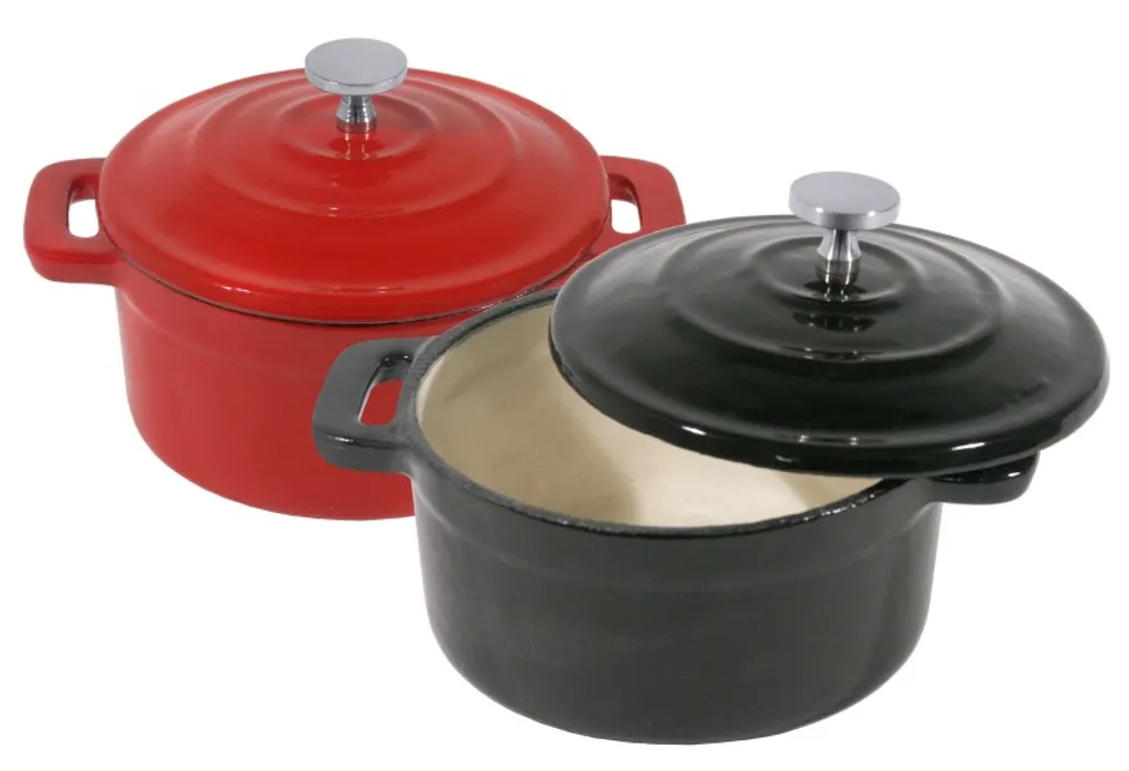 из чугуна, подходит для индукционной индукции, внутри кремовый цвет, снаружи цветная эмаль , крышка с кнопкой из нержавеющей стали
