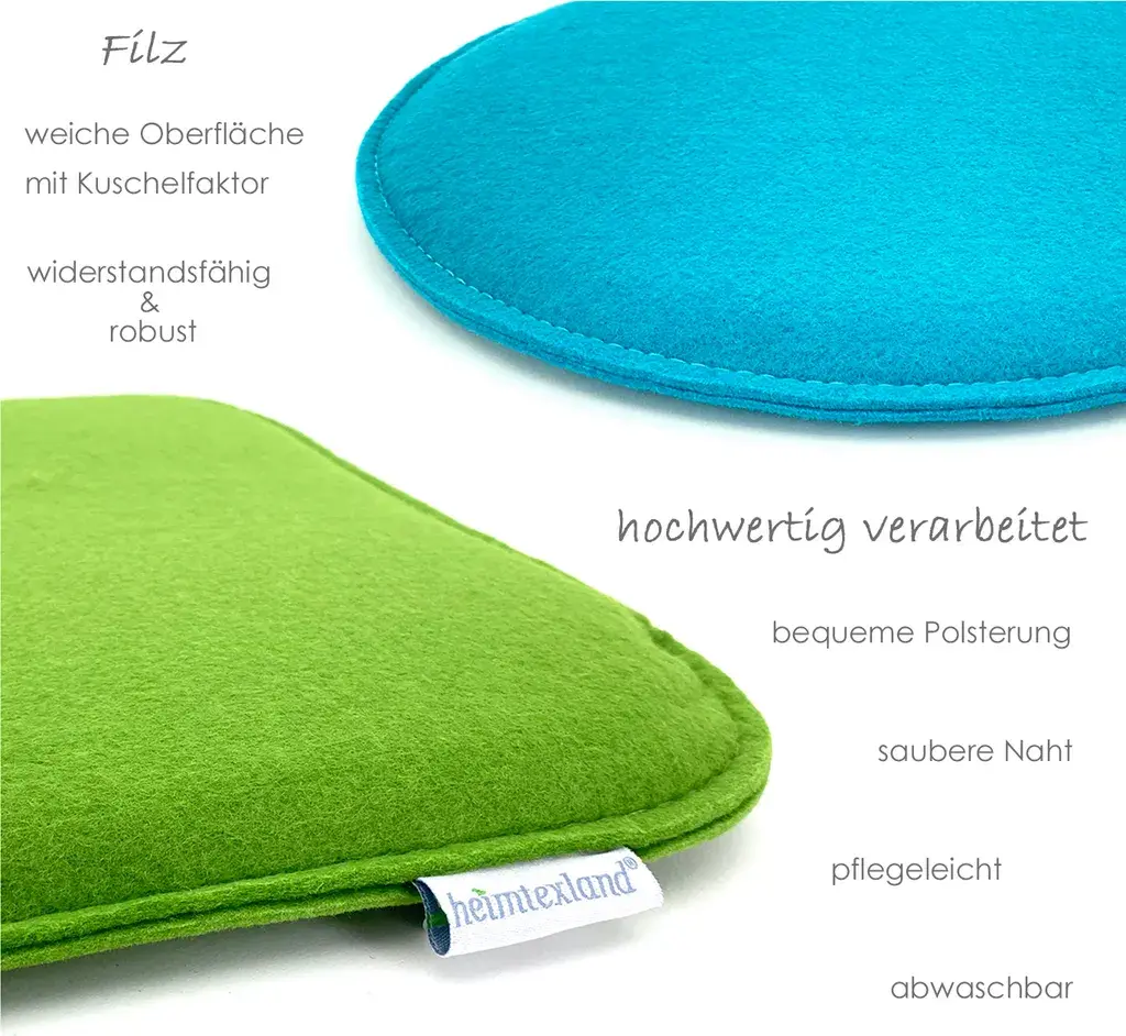 Удобная набивка для стульев, скамеек или в дороге I для дома и на улице I Мягкая поверхность I не царапается I прочный двухслойный фетр I двусторонний I аккуратно сшит I удобная внутренняя подкладка высотой около 2 см. I Прочный I 100 % полиэстер I Легкий уход I Можно стирать I Быстро сохнуть
