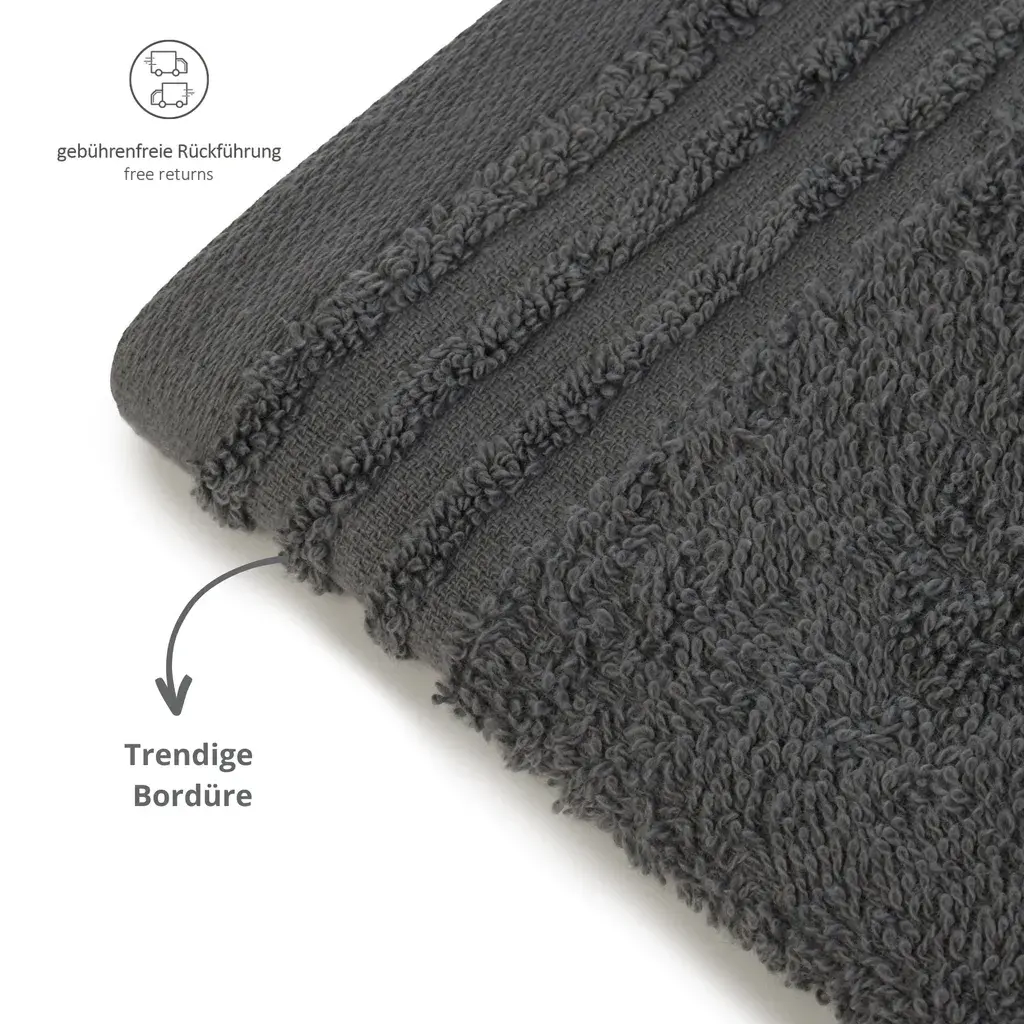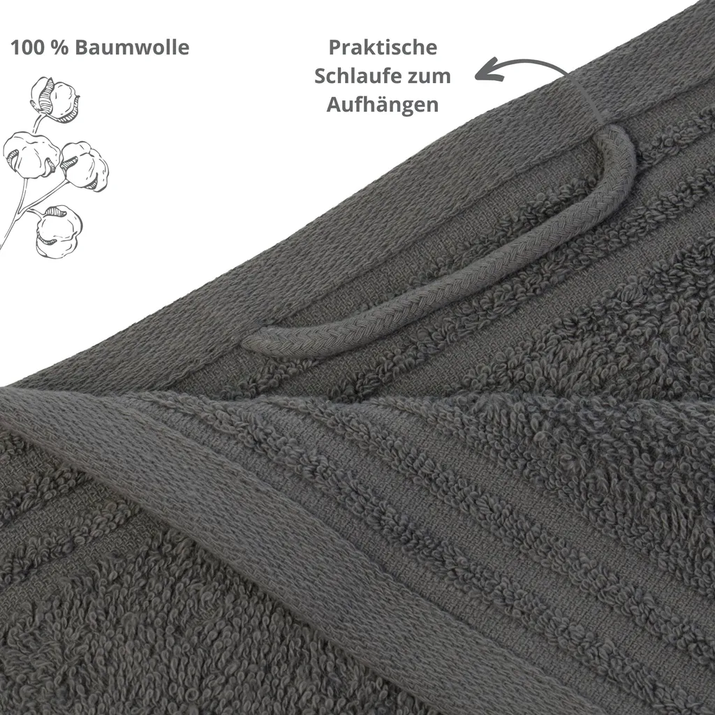 Ощутите простую элегантность в ванной комнате с махровой серией Франкфурт. Эта высококачественная серия состоит из мочалки, мыльного полотенца, гостевого полотенца, полотенца для рук, полотенца для душа и полотенца для сауны, все они изготовлены из 100% хлопка. Махровые полотенца нежных однотонных цветов имеют элегантную кайму и прочные вешалки из прочного твила соответствующего цвета. Они идеально подходят для любого случая, обладают высокой впитывающей способностью и долговечностью. Эта серия идеально подходит для ванных комнат, саун или гостевых туалетов и сочетает в себе стиль и функциональность.