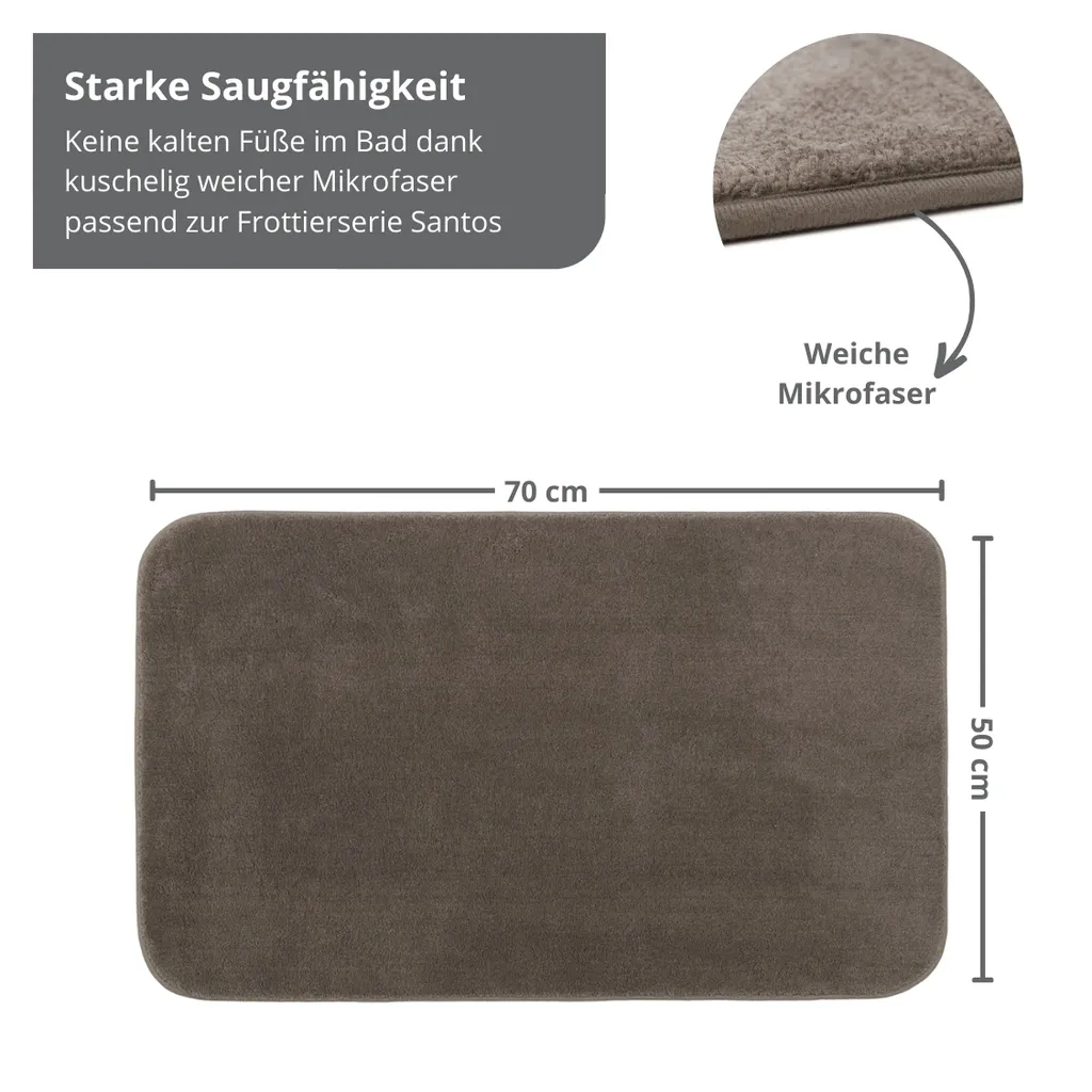Наши современные и свежие коврики для ванной представлены в широкой цветовой гамме и идеально вписываются в любую ванную комнату. Эти стильные коврики подходят для всех напольных покрытий и имеют нескользящую основу. Они идеально дополняют нашу махровую линейку Santos. Придайте своей ванной комнате уютную атмосферу с помощью этих функциональных и элегантных ковриков для ванной