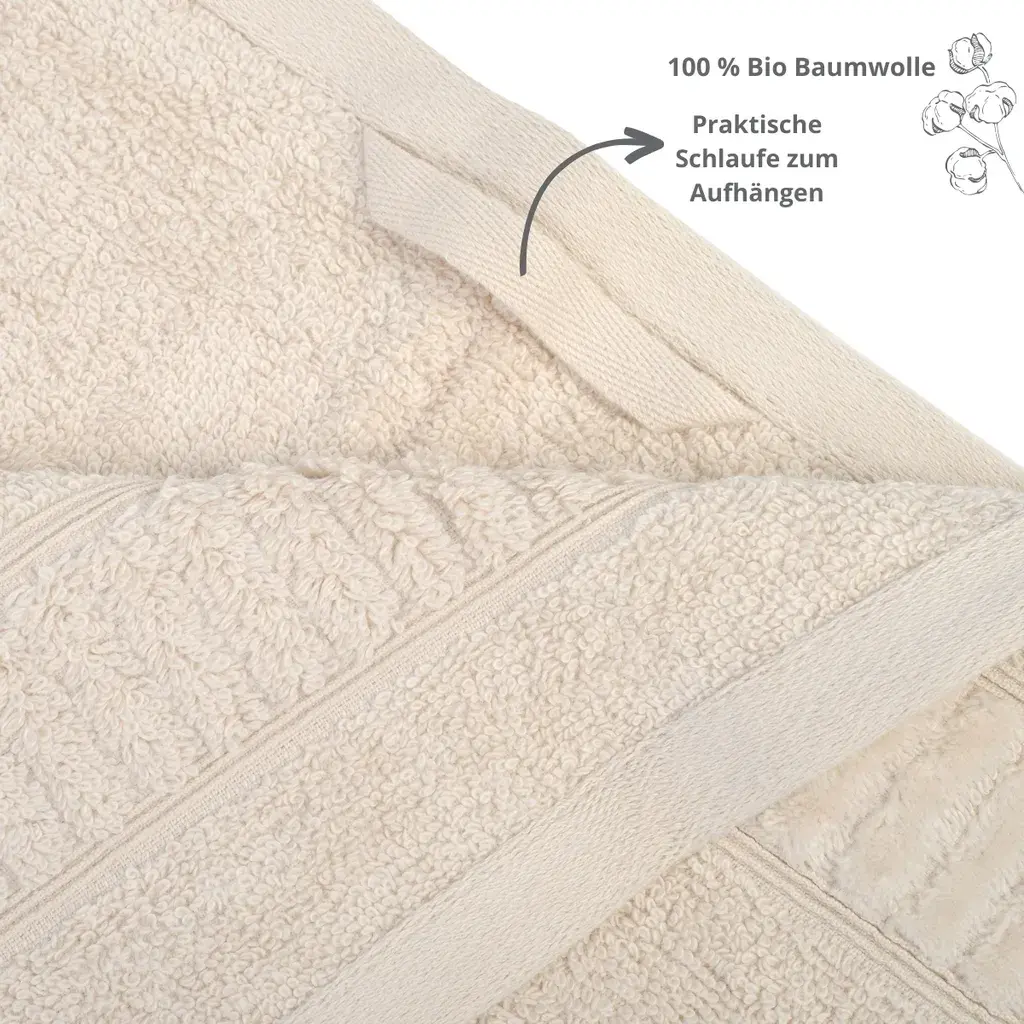 • Материал: более органического не найти. 100% органический хлопок сверхтяжелой плотности 500 г/м² для максимального ощущения кожи. Практичная петля для подвешивания на все стандартные держатели полотенец или крючки.