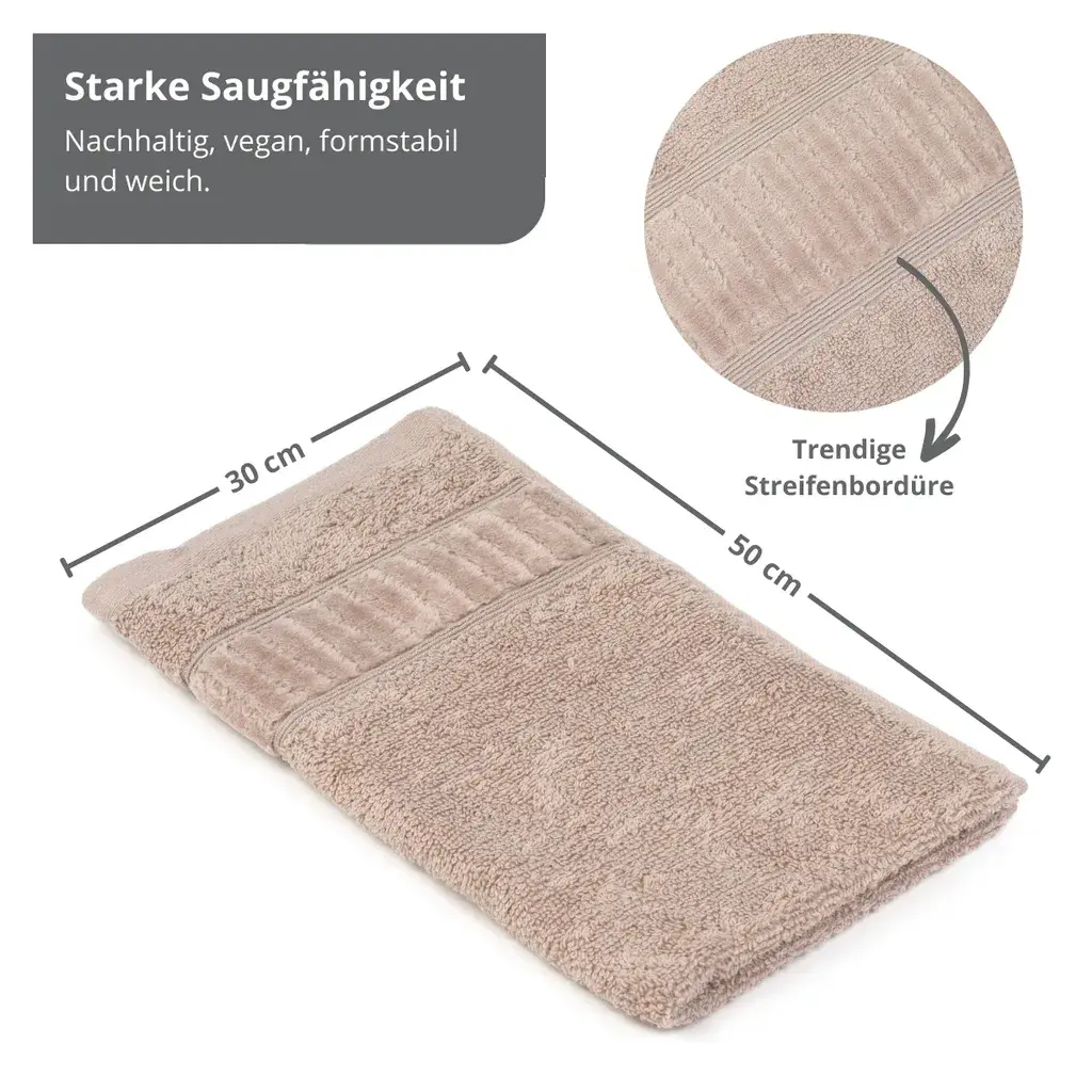Мы активно стремимся обеспечить защиту и популяризацию людей и окружающей среды в текстильном производстве, чтобы служить образцом для подражания для будущих поколений. Махровое полотенце изготовлено из 100% органического хлопка. Стильный бордюр идеально впишется в любую ванную комнату. Полотенце впечатляет высокой впитывающей способностью и пушистой текстурой.
