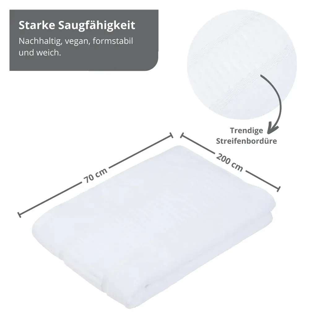 Это махровое полотенце изготовлено из 100% хлопка. Стильный бордюр идеально впишется в любую ванную комнату. Полотенце впечатляет высокой впитывающей способностью и пушистой текстурой.