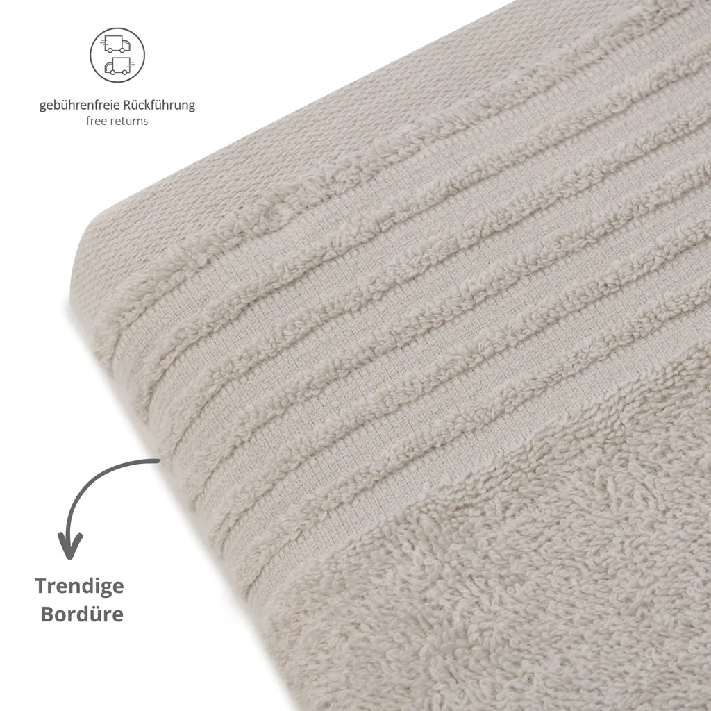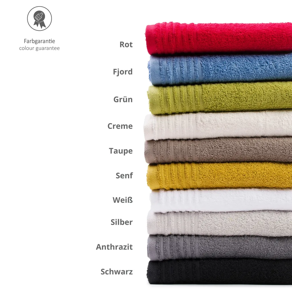 Ощутите простую элегантность в ванной комнате с махровой серией Франкфурт. Эта высококачественная серия состоит из мочалки, мыльного полотенца, гостевого полотенца, полотенца для рук, полотенца для душа и полотенца для сауны, все они изготовлены из 100% хлопка. Махровые полотенца нежных однотонных цветов имеют элегантную кайму и прочные вешалки из прочного твила соответствующего цвета. Они идеально подходят для любого случая, обладают высокой впитывающей способностью и долговечностью. Эта серия идеально подходит для ванных комнат, саун или гостевых туалетов и сочетает в себе стиль и функциональность.