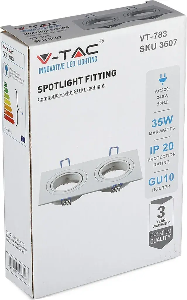 Поворотная двойная монтажная рамка для светодиодов белого квадрата от V-TAC может можно использовать в качестве декоративного. Установите освещение на потолке во всех жилых комнатах.