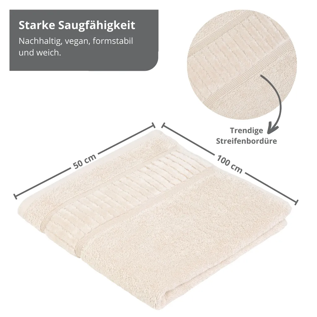 Мы активно стремимся обеспечить защиту и популяризацию людей и окружающей среды в текстильном производстве, чтобы служить образцом для подражания для будущих поколений. Махровое полотенце изготовлено из 100% органического хлопка. Стильный бордюр идеально впишется в любую ванную комнату. Полотенце впечатляет высокой впитывающей способностью и пушистой текстурой.