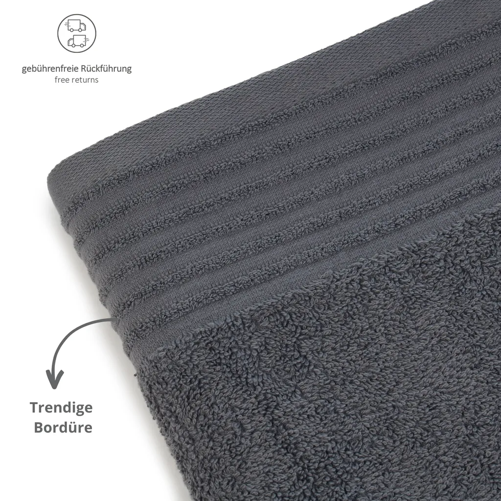 Ощутите простую элегантность в ванной комнате с махровой серией Франкфурт. Эта высококачественная серия состоит из мочалки, мыльного полотенца, гостевого полотенца, полотенца для рук, полотенца для душа и полотенца для сауны, все они изготовлены из 100% хлопка. Махровые полотенца нежных однотонных цветов имеют элегантную кайму и прочные вешалки из прочного твила соответствующего цвета. Они идеально подходят для любого случая, обладают высокой впитывающей способностью и долговечностью. Эта серия идеально подходит для ванных комнат, саун или гостевых туалетов и сочетает в себе стиль и функциональность.