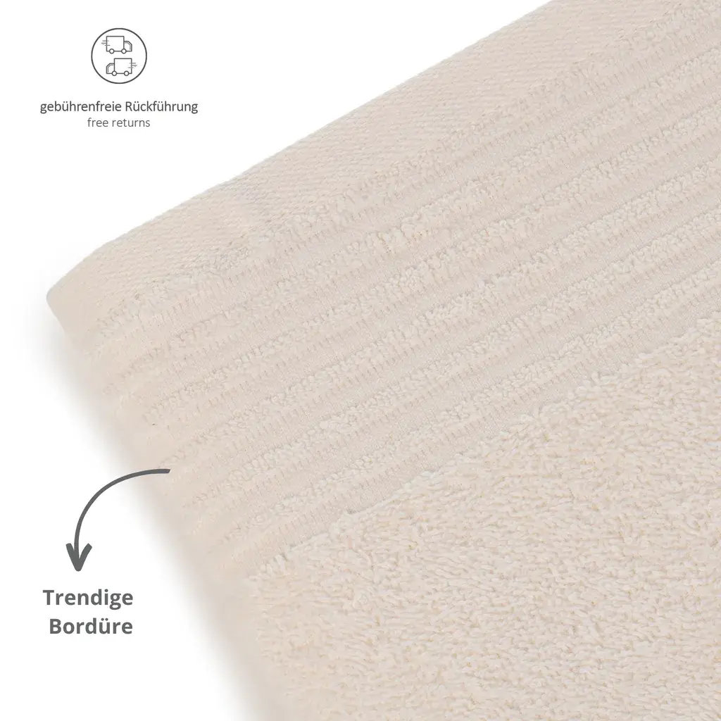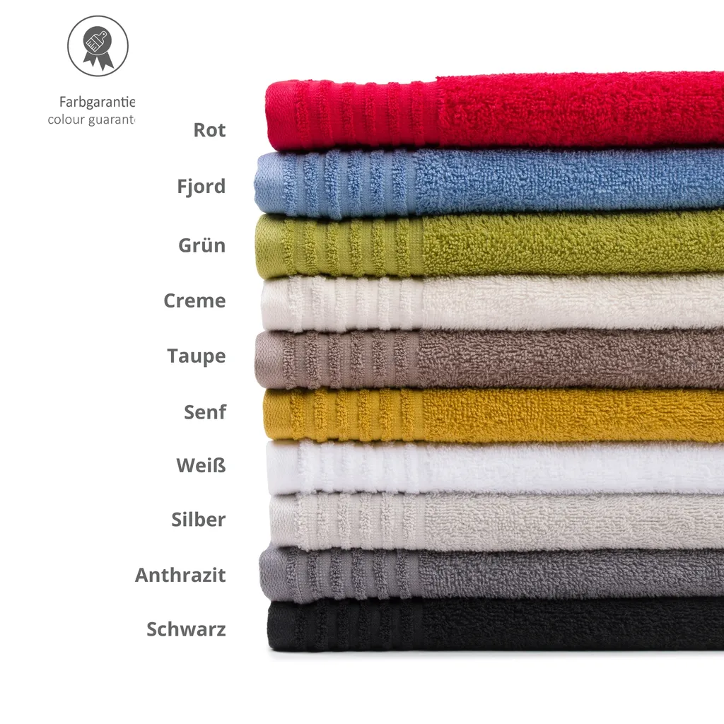 Ощутите простую элегантность в ванной комнате с махровой серией Франкфурт. Эта высококачественная серия состоит из мочалки, мыльного полотенца, гостевого полотенца, полотенца для рук, полотенца для душа и полотенца для сауны, все они изготовлены из 100% хлопка. Махровые полотенца нежных однотонных цветов имеют элегантную кайму и прочные вешалки из прочного твила соответствующего цвета. Они идеально подходят для любого случая, обладают высокой впитывающей способностью и долговечностью. Эта серия идеально подходит для ванных комнат, саун или гостевых туалетов и сочетает в себе стиль и функциональность.