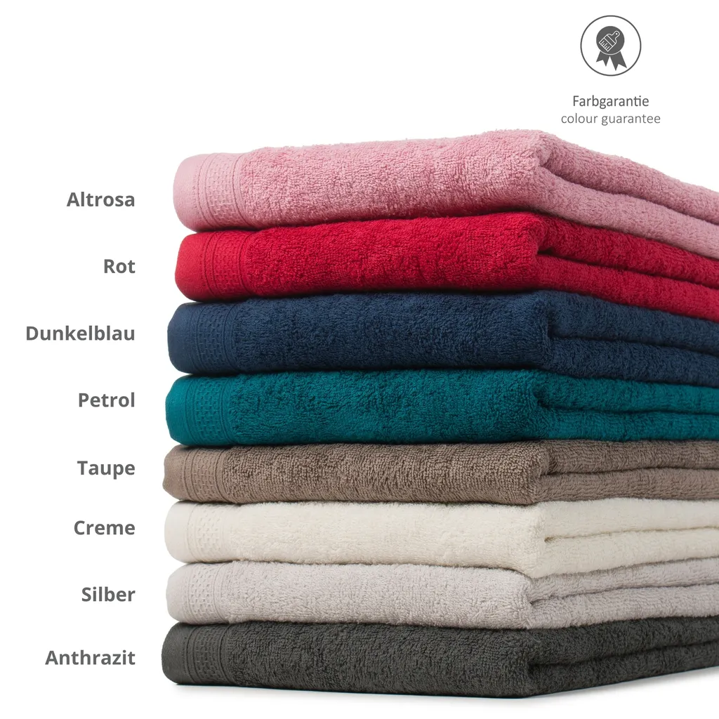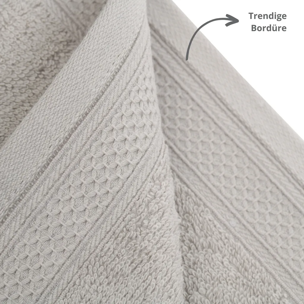 • Материал: он не может быть более экологичным. Изделия из 65 % переработанного хлопка и 35 % из переработанного ПЭТ, плотностью 500 г/м² обеспечивают нежнейшее ощущение кожи. Практичная петля для подвешивания на все стандартные держатели для полотенец или крючки.