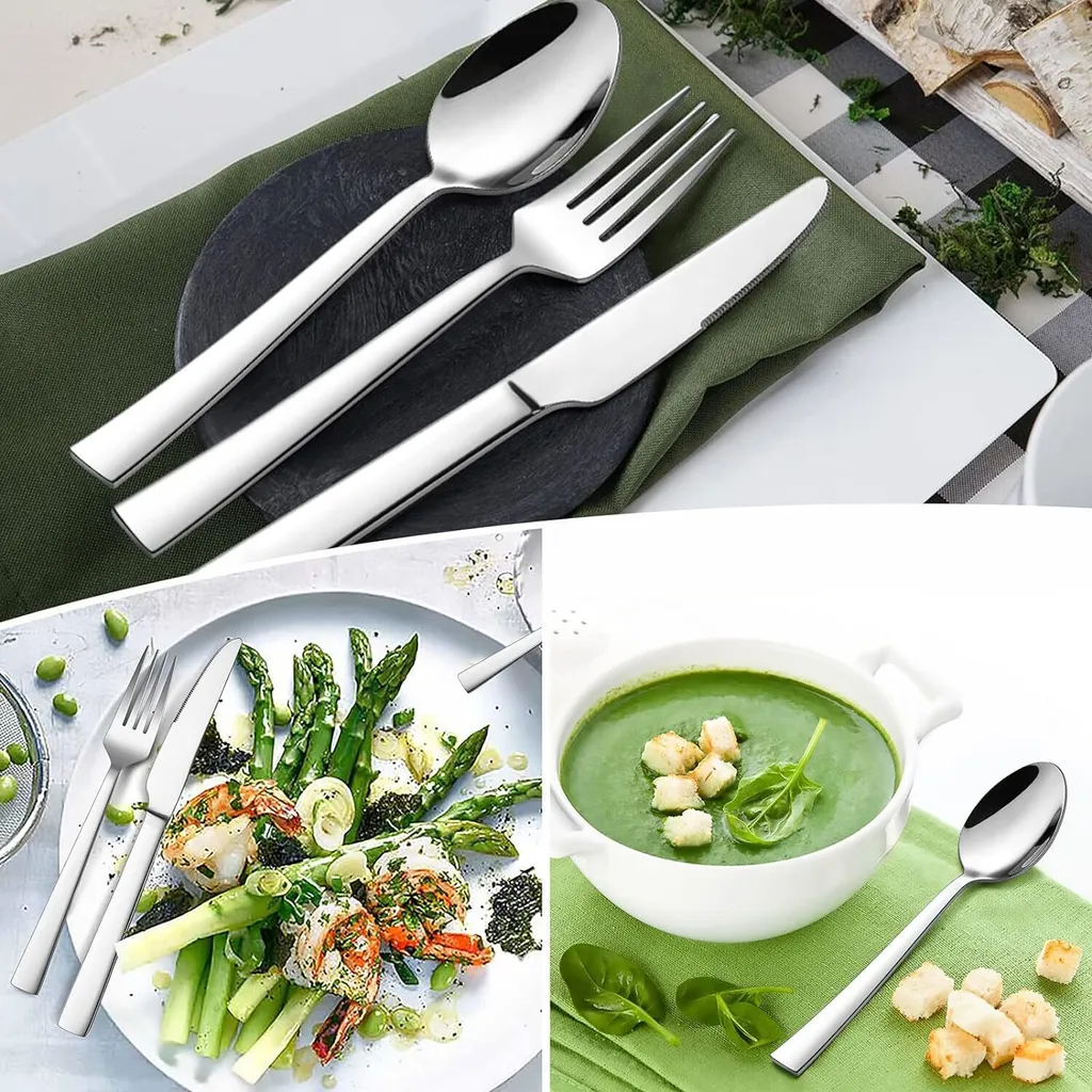 Элегантный дизайн для широких губ. использование Красивый набор столовых приборов рассчитан на долгий срок службы, современный и минималистичный дизайн идеально дополняет существующее меню столовых приборов, идеально подходит для повседневного использования дома, в ресторанах, отелях, для улучшения впечатлений от обеда, для создания привлекательных украшений стола, а также отличный подарок для свадьбы, Рождества, дня рождения, новоселья