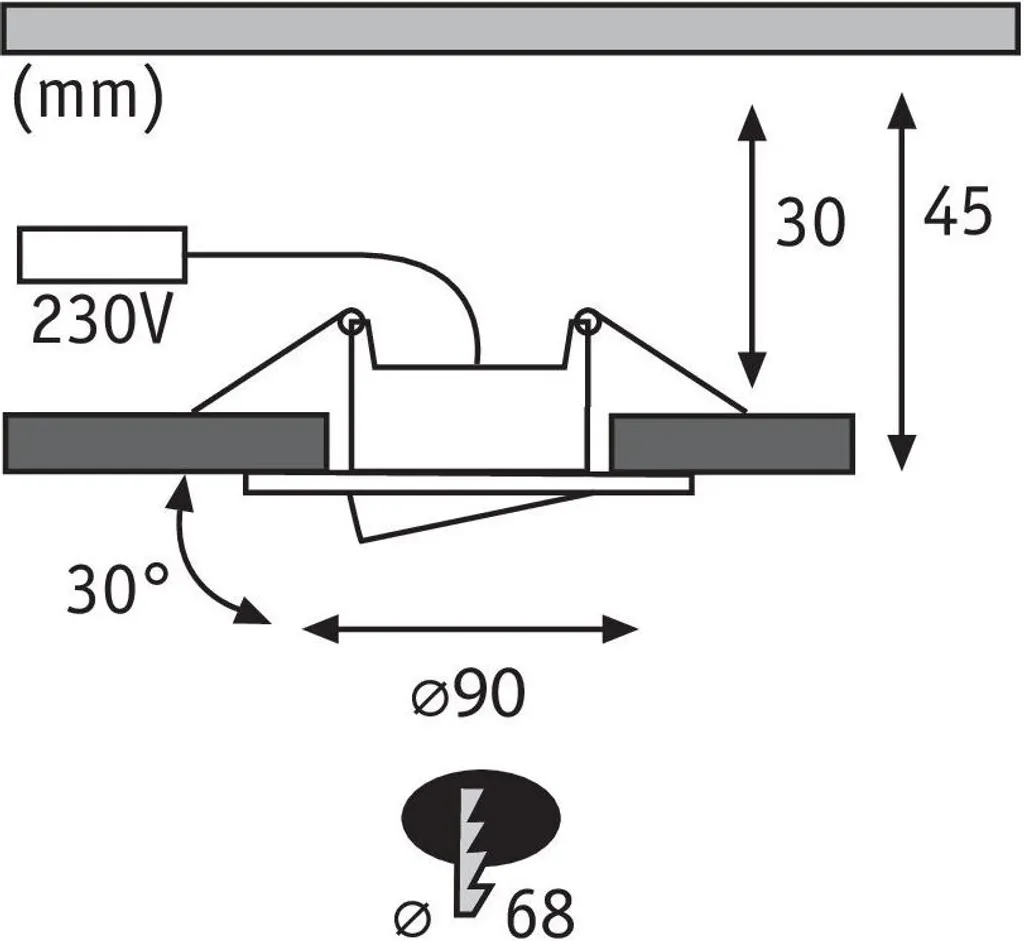 Водоструйная защита IP65, защита для влажных помещений или открытых площадок, с поворотными точками для оптимального освещения при прямом подключении 230 В. - Тип: встраиваемый светильник
