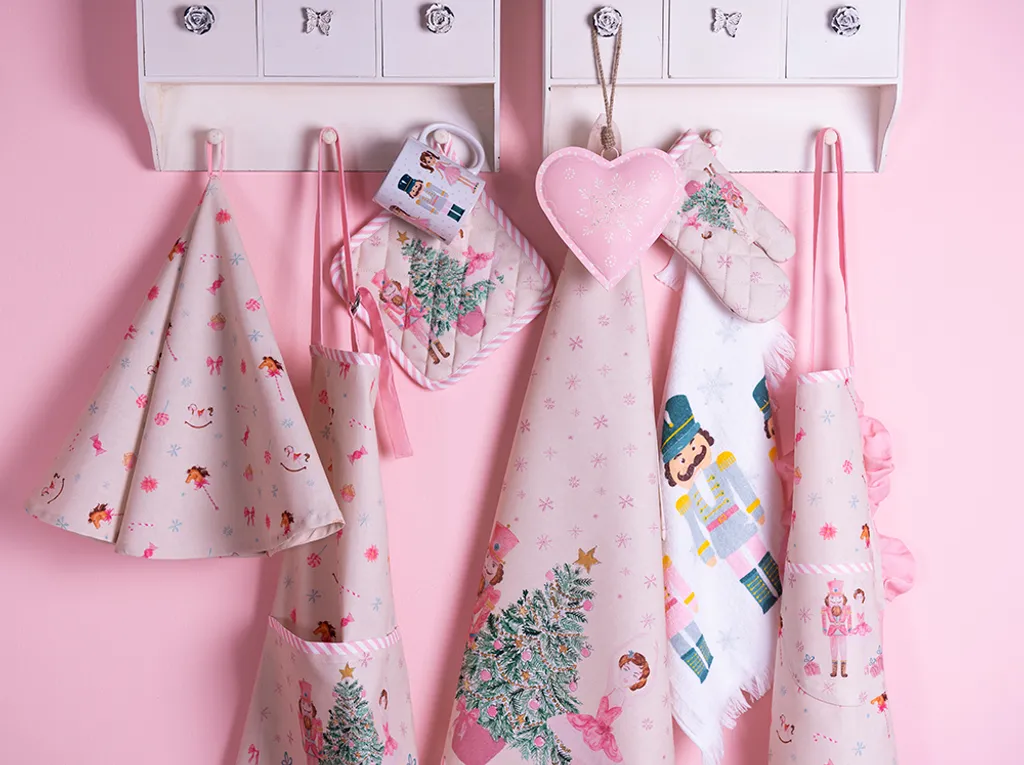 Эта серия в нежных розовых тонах придает форму истории о Щелкунчике. Этот текстильный ассортимент также доступен для детей, поэтому на кухне может участвовать вся семья. Узор со всеми узнаваемыми элементами этой темы придает этой коллекции молодежный оттенок. Щелкунчик символизирует удачу. Наслаждайтесь прекрасными моментами вместе.