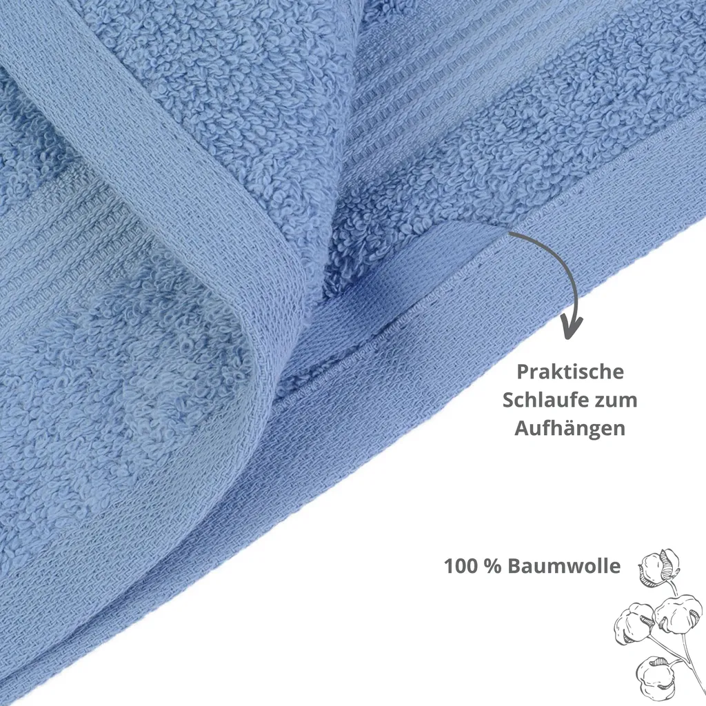 • Материал: Роскошнее быть не может. 100% высококачественный хлопок сверхплотной плотности 550 г/м² для приятного ощущения кожи. Практичная петля для подвешивания на все стандартные держатели полотенец или крючки.