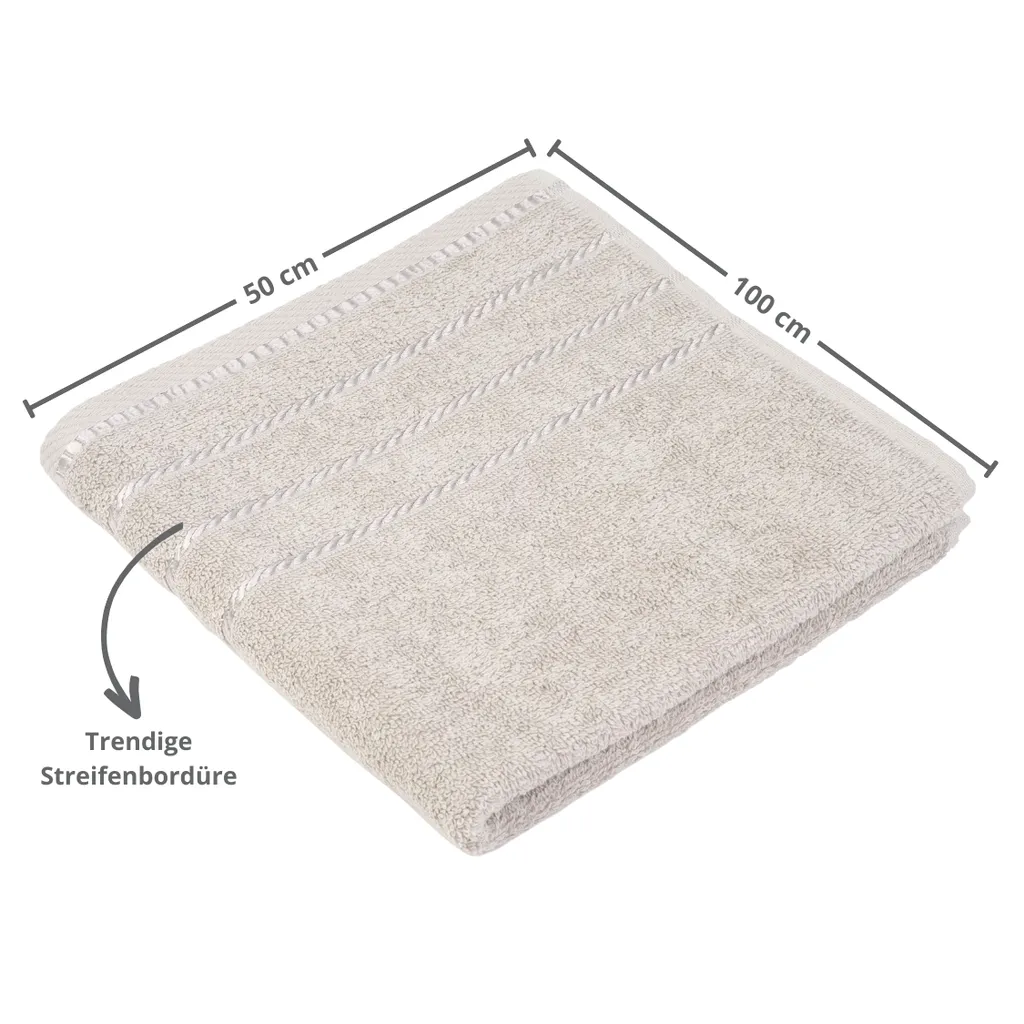 Махровая гамма Potsdam – однотонная и в полоску – вас порадует! Эти роскошные полотенца впечатляют своими превосходными практичными свойствами и разнообразием ярких цветов. Благодаря 17 однотонным цветам и идеально сочетающимся сериям полос они открывают безграничные возможности комбинирования. Эти махровые полотенца идеально подходят для ванной комнаты, бассейна или сауны. Они расставят стильные акценты и обеспечат настоящие моменты благополучия. Получите идеальное сочетание качества и дизайна у себя дома.