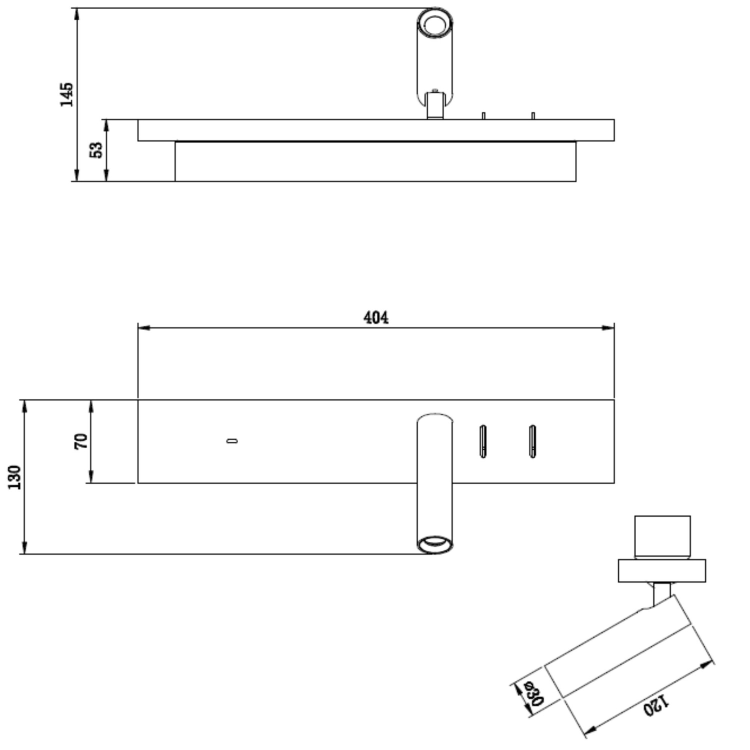 Размеры 405 x 50 x 70 мм (Д x Ш x В) - идеально подходит для использования у изголовья кровати.