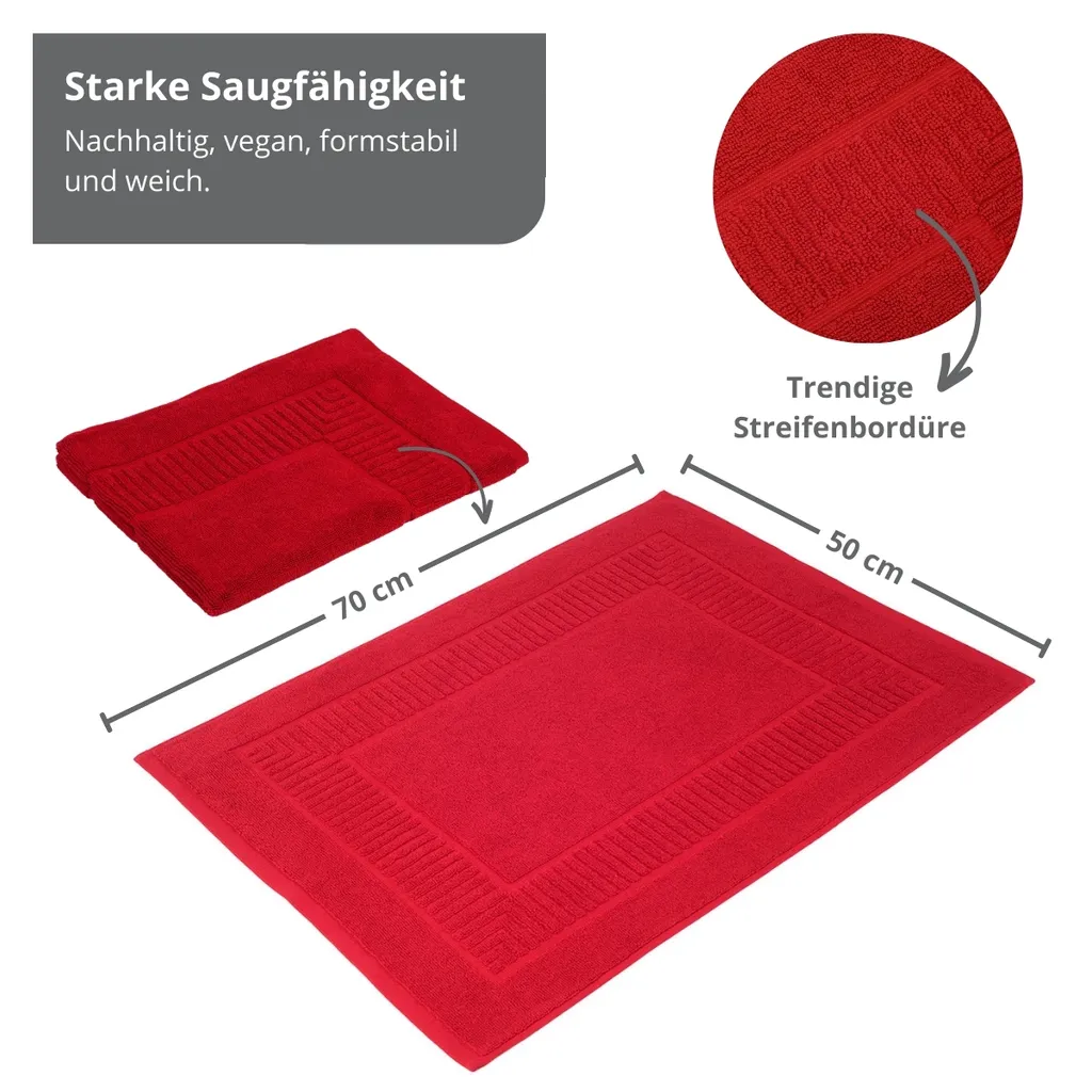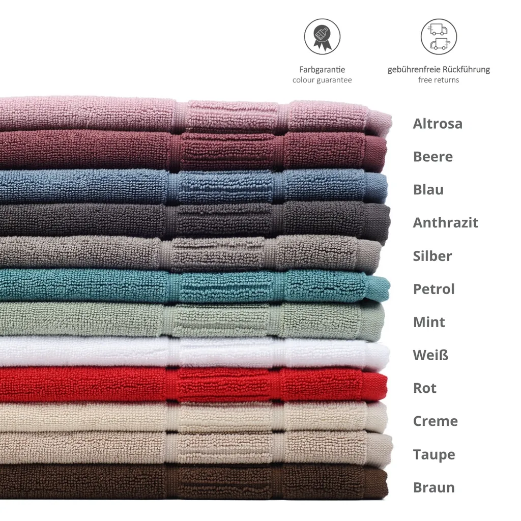 Избегайте холодных ног на плитке в ванной с помощью нашего высококачественного органического коврика для ванной, изготовленного из 100 % чистого органического хлопка. Этот пушистый коврик для ванной создаст ощущение уюта и тепла в ванной комнате. Доступный в многочисленных однотонных цветах, таких как белый, кремовый, красный, старо-розовый, ягодный, синий, бензиновый, серо-коричневый, коричневый, мятный, серебристый и антрацит, он идеально вписывается в любой интерьер. Выбирайте размеры 50 x 70 см (900 г/м²) или 60 x 100 см (1200 г/м²). Сертифицировано GOTS, можно стирать при 60 °C и сушить в стиральной машине.